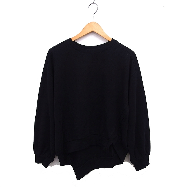 イェッカヴェッカ YECCA VECCA Editt by トレーナー バックロング リブ コットン混 アシンメトリーヘム 長袖 F 黒 ブラック /NT28