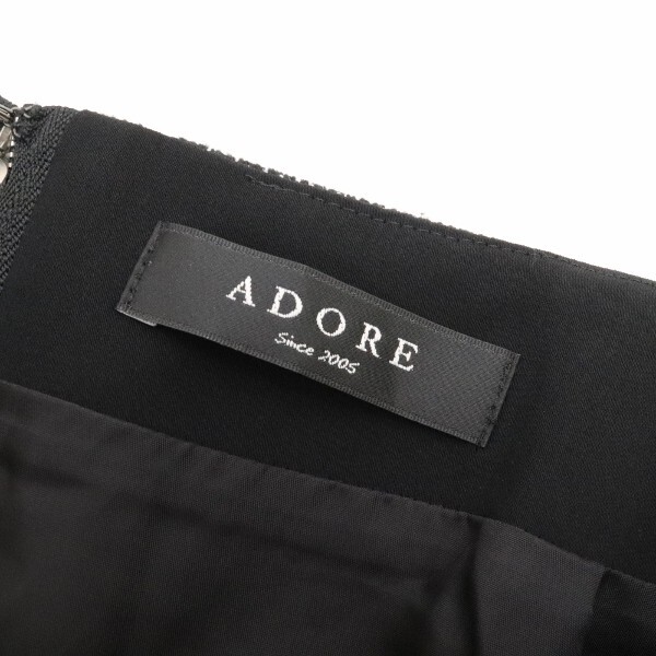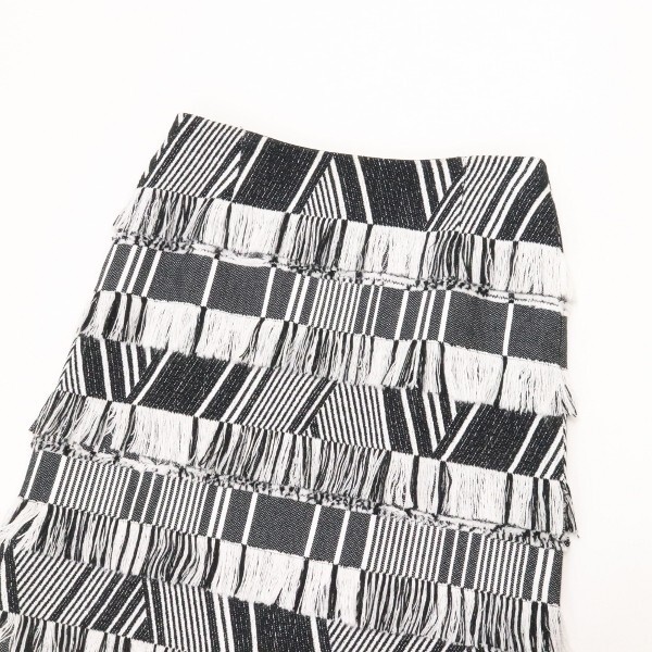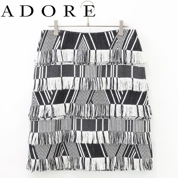 【KA31】美品◆ADORE アドーア ラメ フリンジ 織柄 ツイード スカート ブラック × ホワイト 40 | |