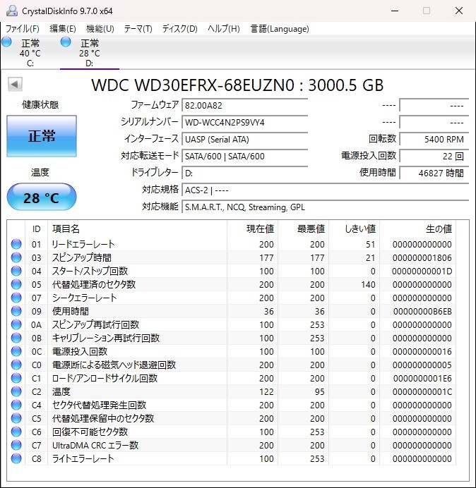 Western Digital WD red WD30EFRX 3TB 3台 健康状態 正常  HDD ハードディスク 8-30-C3