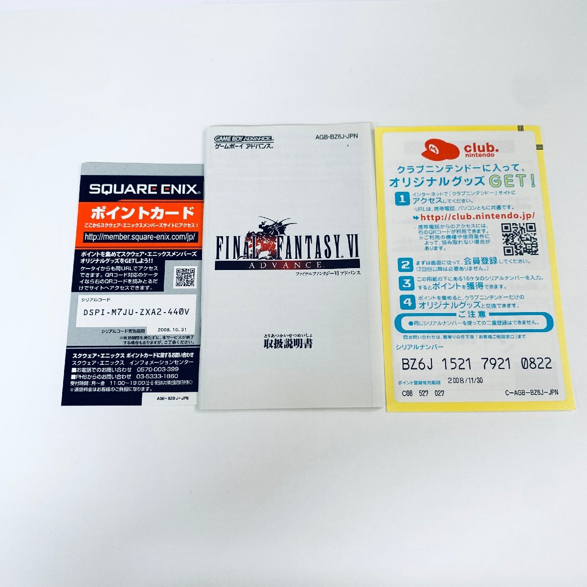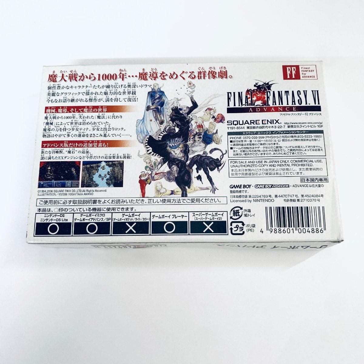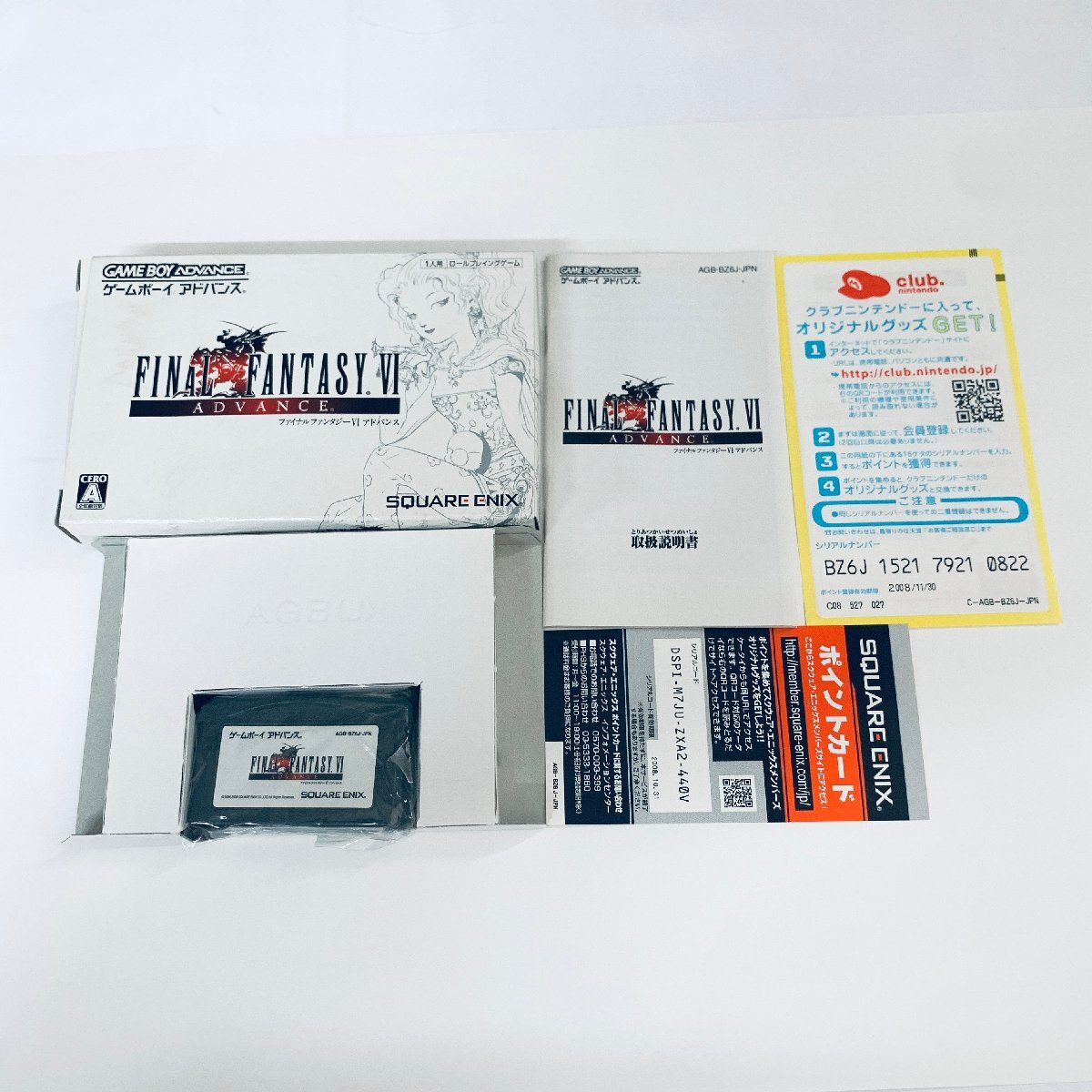 商品情報 タイトル名:ファイナルファンタジーVI アドバンス メーカー:スクウェア・エニックス 商品状態 ソフト(表面):ランクC-目立つ傷・すれ・シール部分などにダメージがあるが使用には問題のない状態 ソフト(背面):ランクC-目立つ傷・すれ・シール部分などにダメージがあるが使用には問題のない状態 箱:ランクC-全体的に小さなダメージなどがある状態 説明書:ランクB-多少の傷などのダメージはあるが、その他はきれいな状態 動作確認:確認済み 管理番号:4001020 その他の状態は画像でご確認ください |