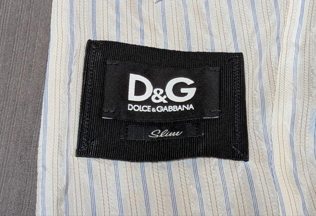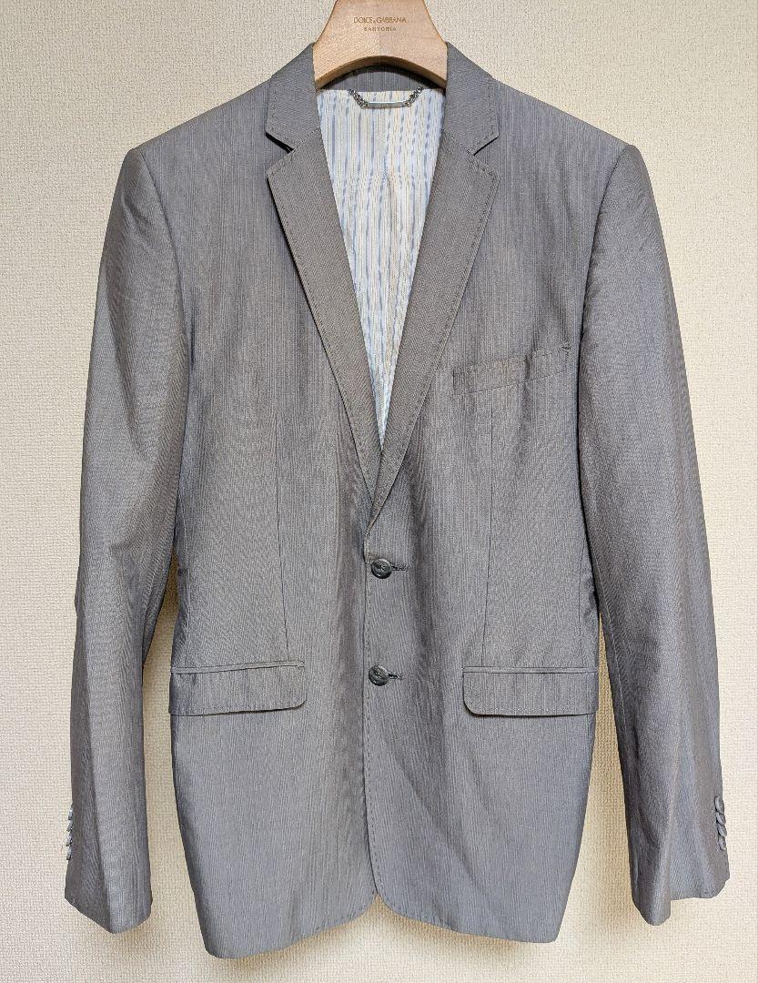 ドルガバ D&Gブランドのシングルブレストのグレー(シルバー系 光沢感あり)のビジネスジャケット、スリムフィットデザインです。
