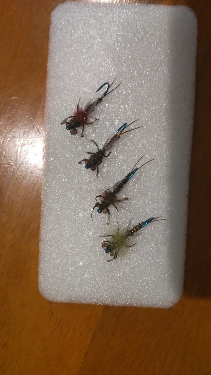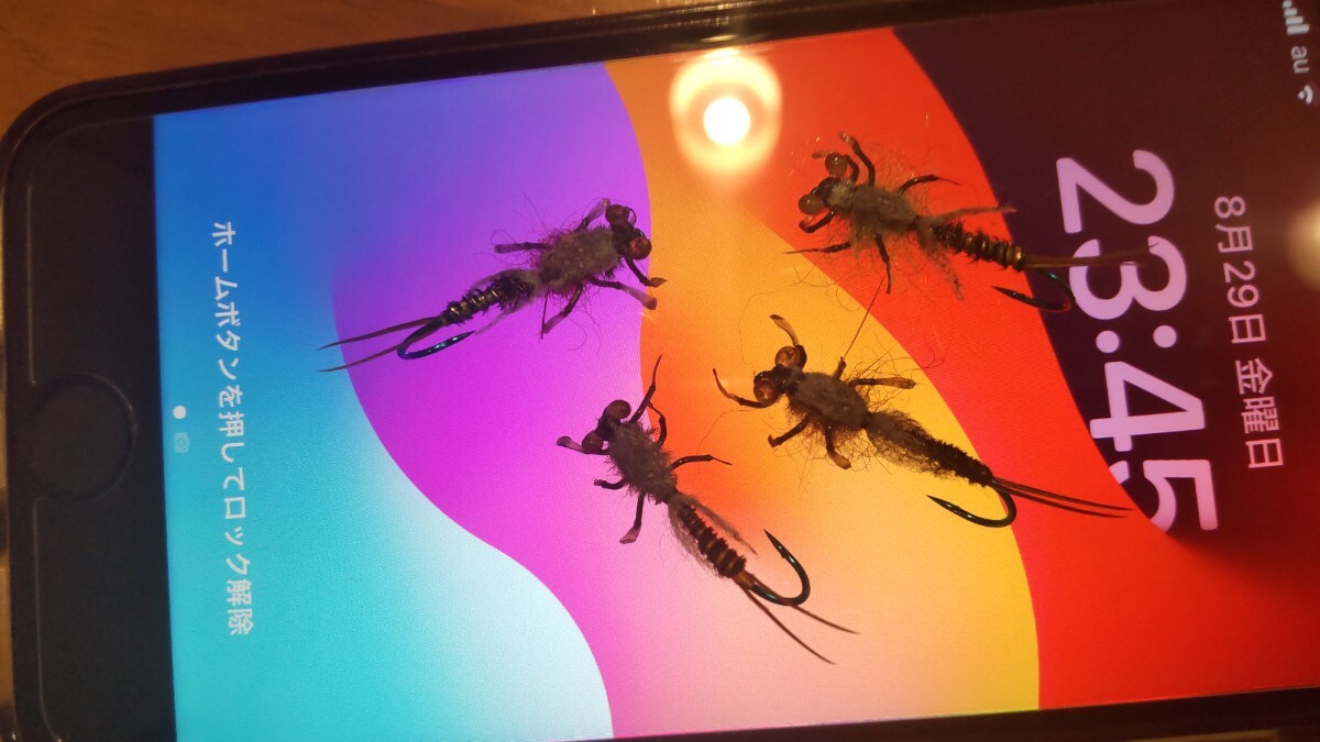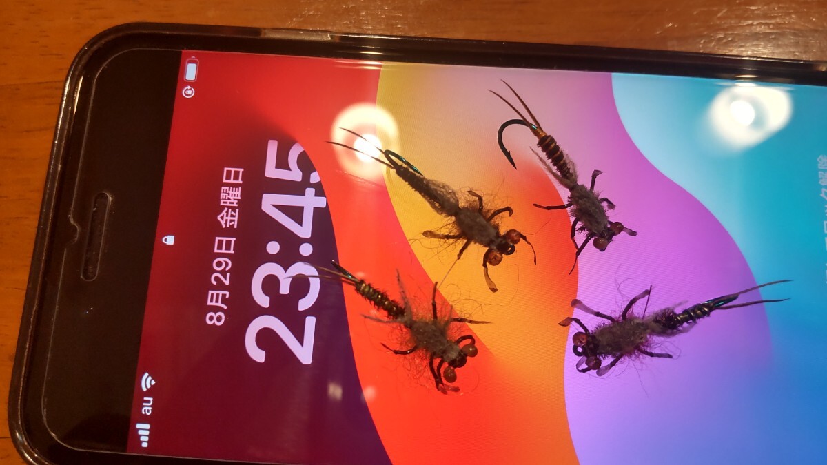 #8フックに巻きましたニンフです。渓魚をはじめ、対象魚色々とお試しください。