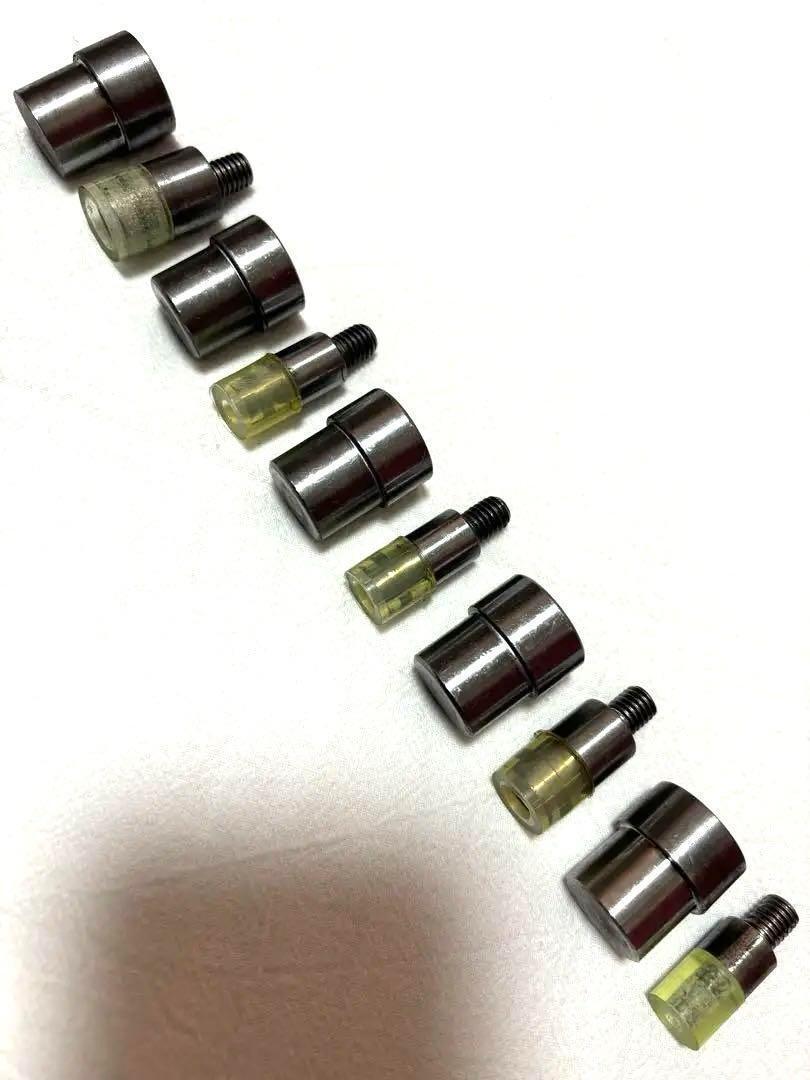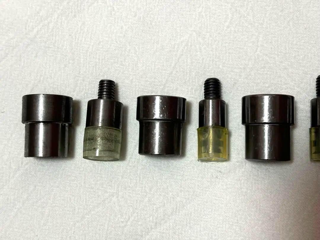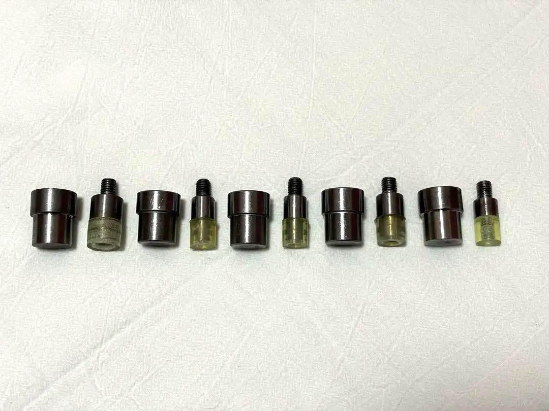 4mmから12mmまでの5つのサイズがセットになっており、用途に応じたカシメの取り付けが可能です。