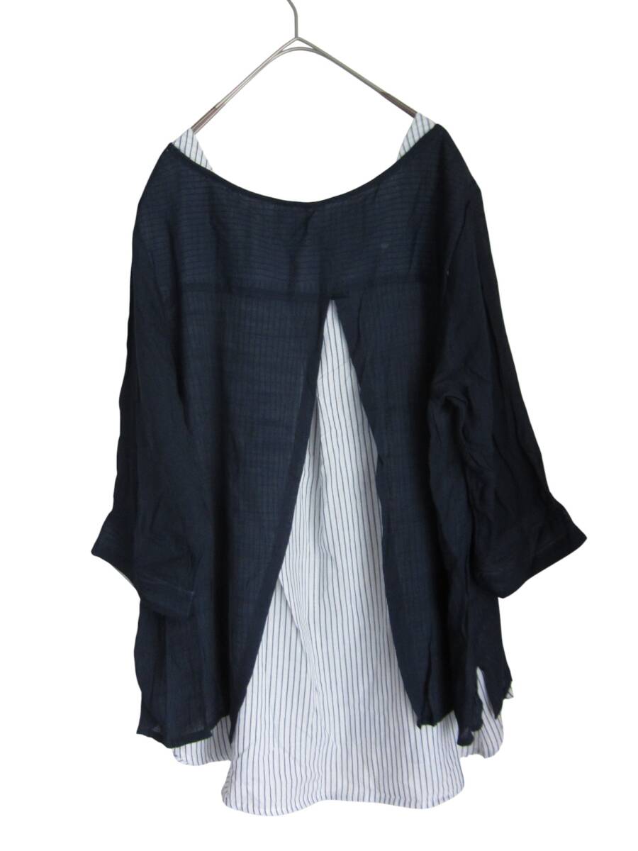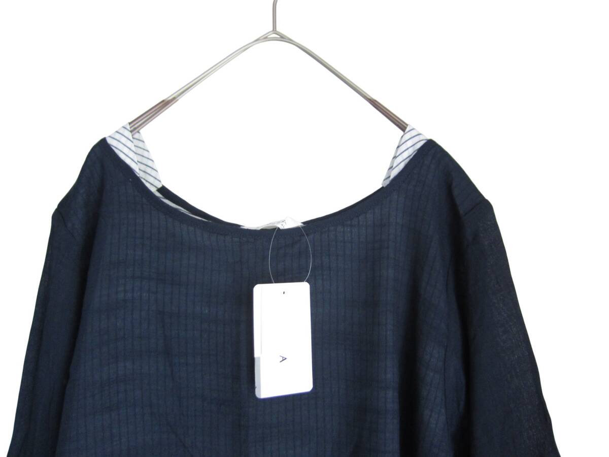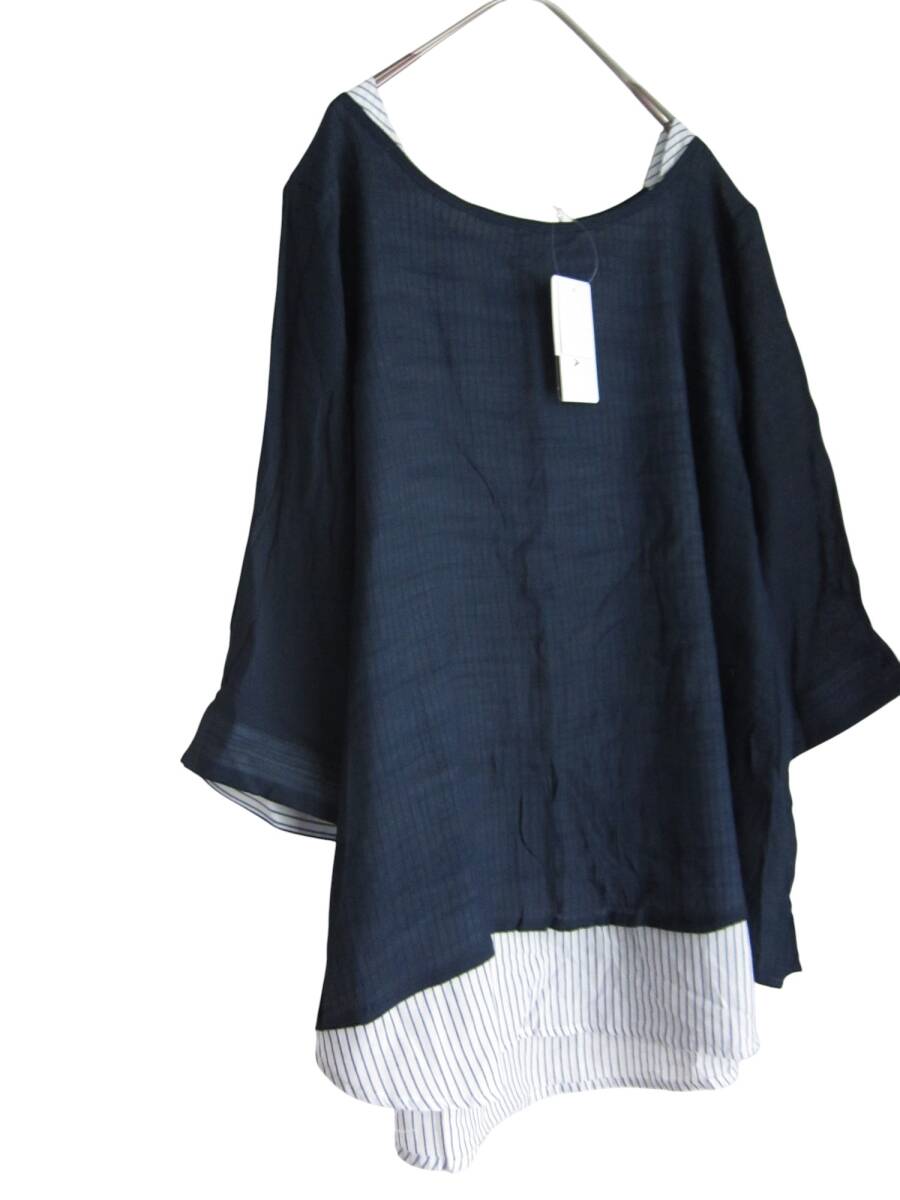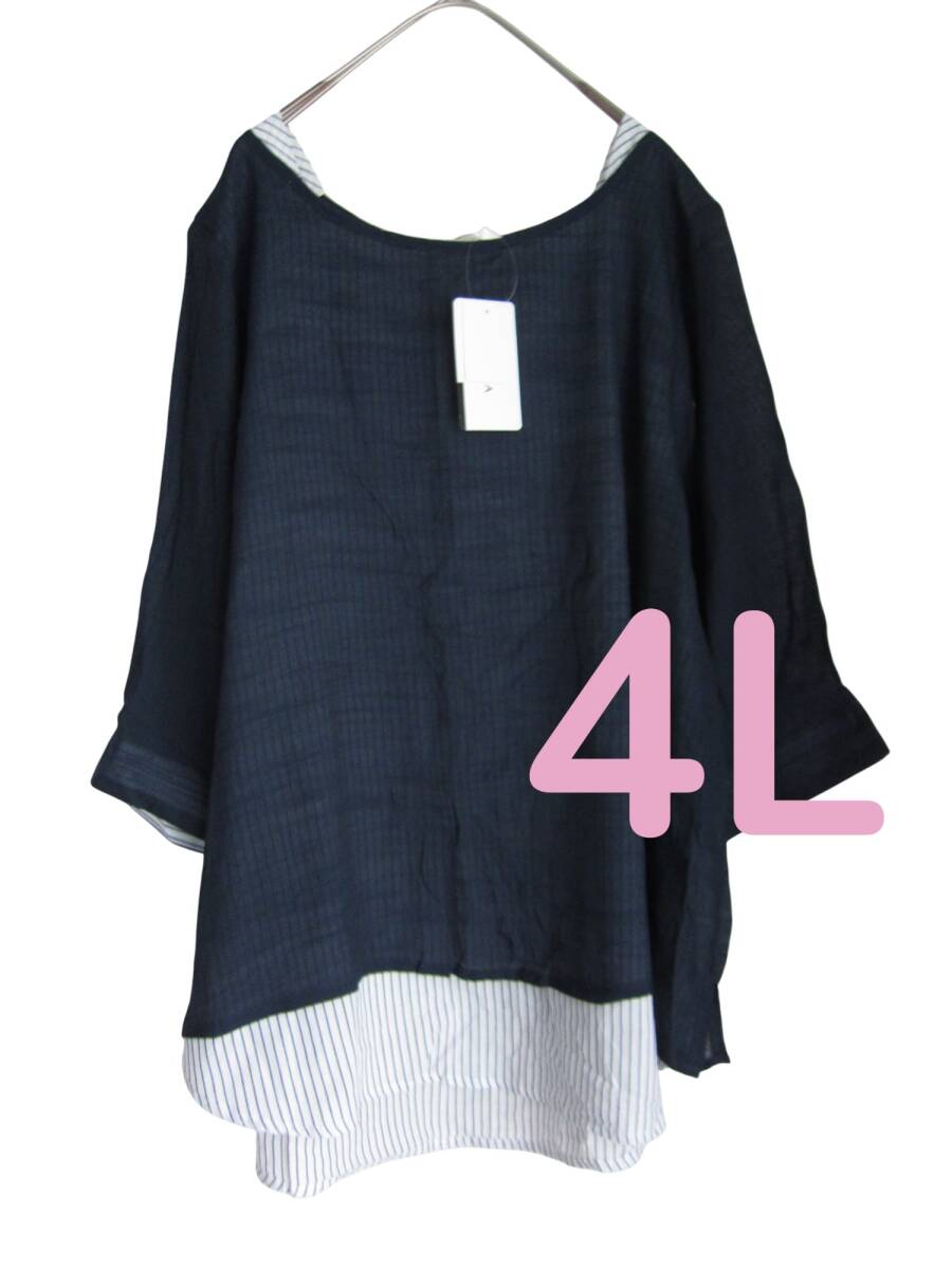 ★送料無料 R48 新品 【4L】 ネイビー 重ね着風 7分袖 カットソー 大きいサイズ ゆうパケットポスト ストライプ 1枚仕立て