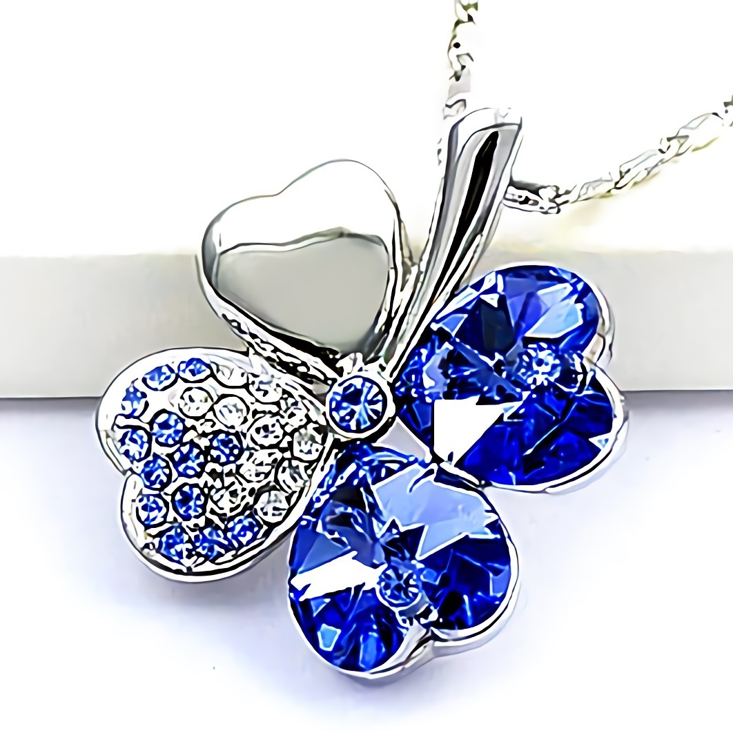 新品★送料無料★幸運の四葉ブルーサファイアダイヤモンドプラチナ仕上925シルバーネックレス誕生日プレゼント旅行連休ギフト国内発送
