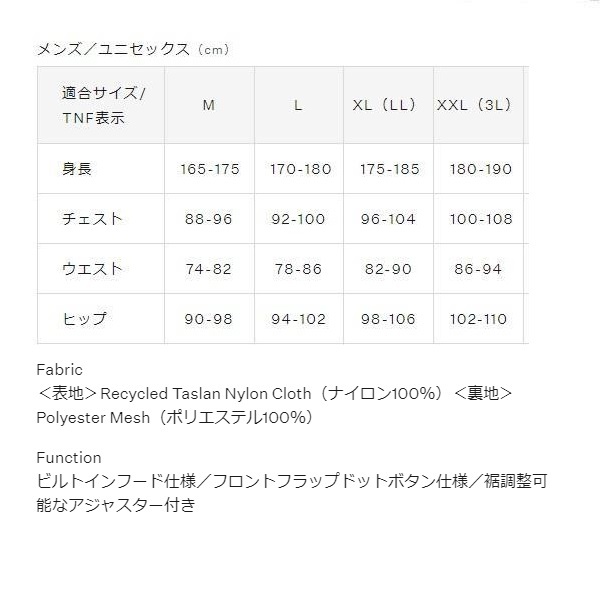 ビルトインフード仕様/フロントフラップドットボタン仕様/裾調整可能なアジャスター付き