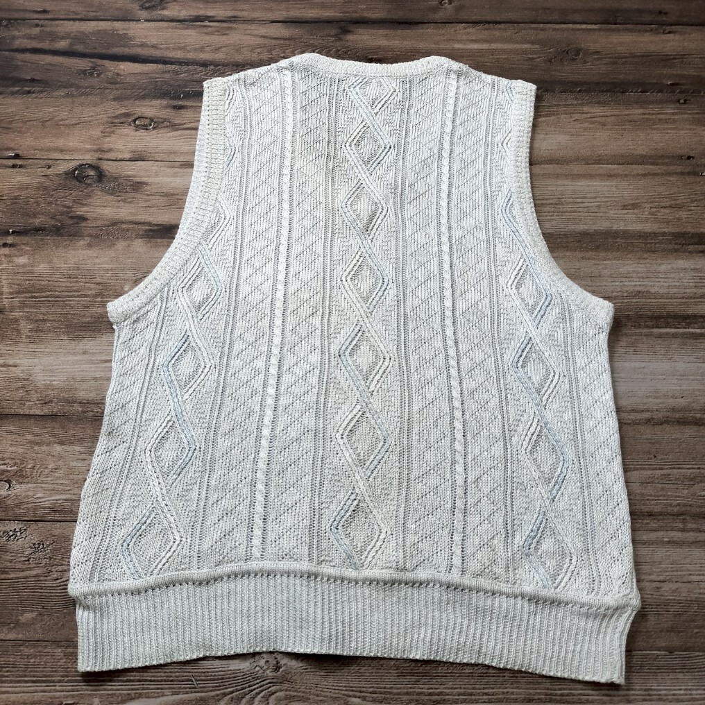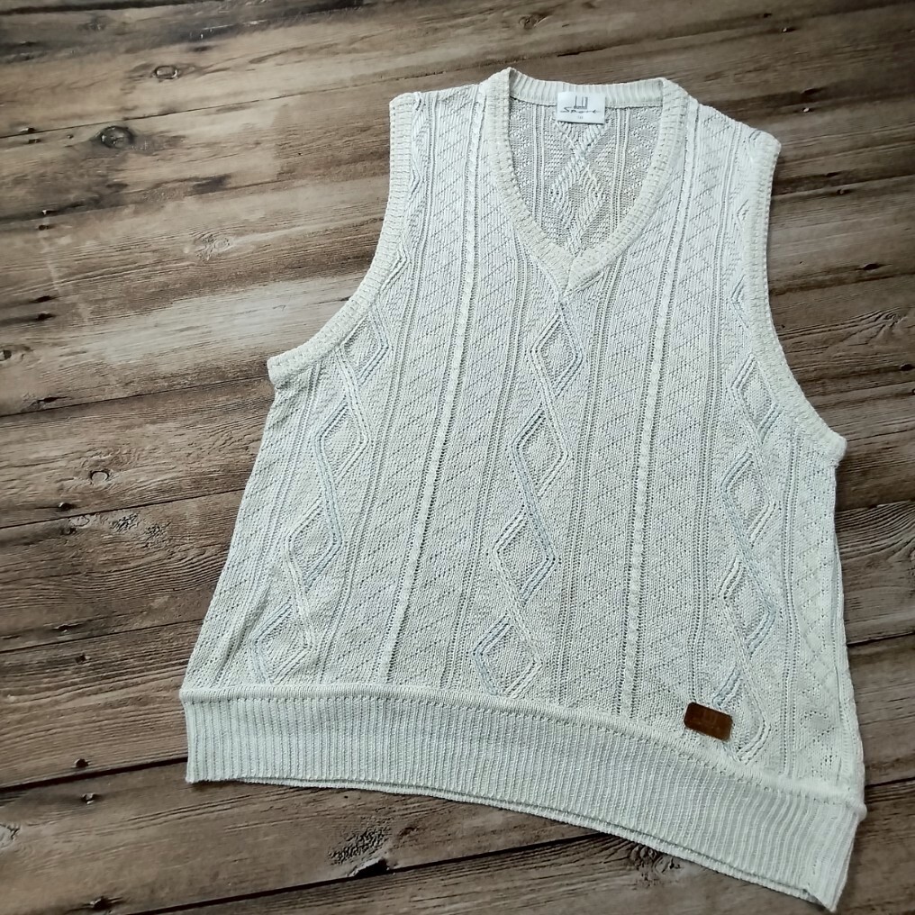 高級感溢れる Dunhill SPORT ダンヒル スポーツ レディース ニットベスト Vネック ケーブル編み 麻100% ナチュラルカラー サイズ3 Lサイズ