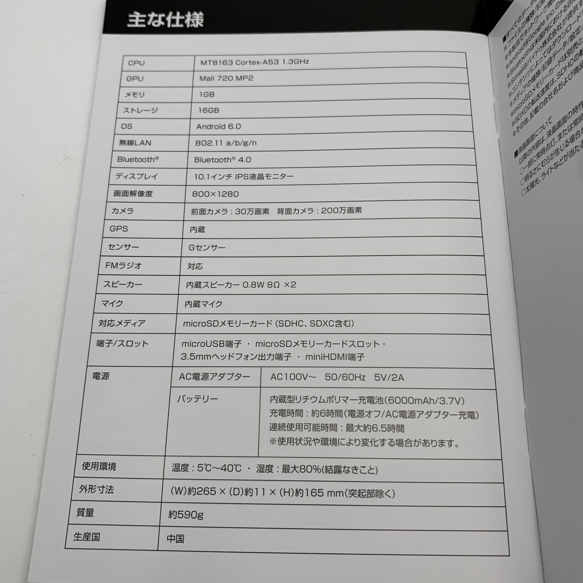 【未使用】android6 10.1インチタブレット SARA-001 アンドロイドタブレット ワイファイ 充電器付属 Wi-Fi