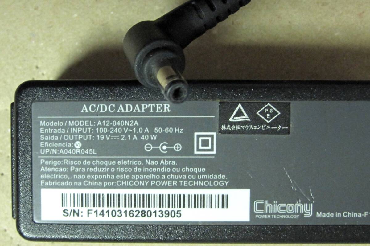 マウスコンピューター 純正ACアダプタ A12-040N2A (19V 2.1A) EIAJ#3