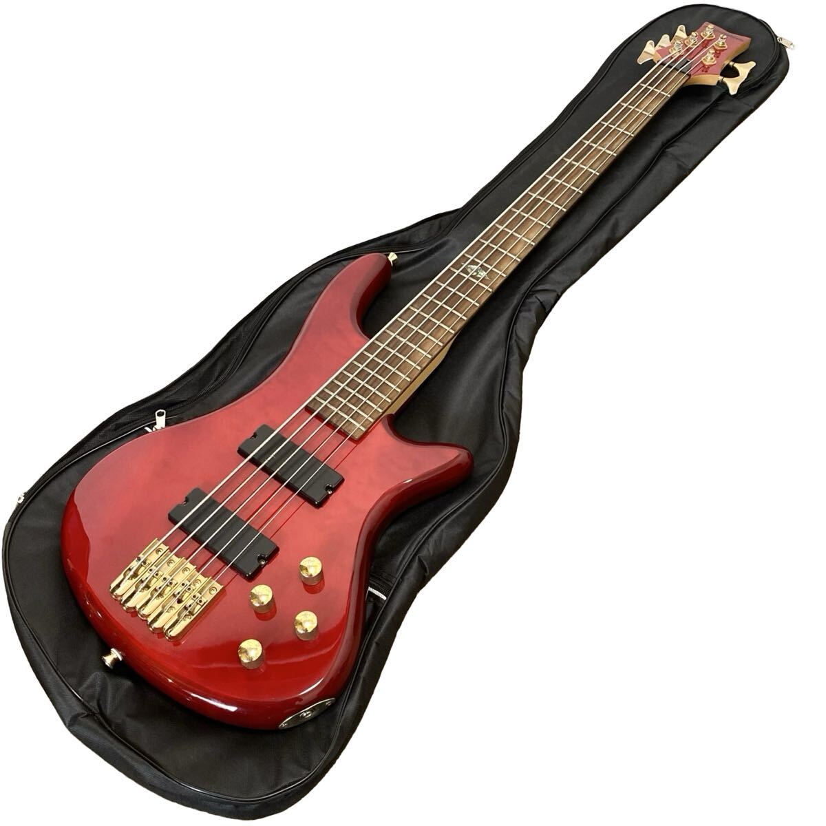○現状渡し■PLAYTECH プレイテック 5弦エレキベース 24フレット ゴールドパーツ仕様 ソフトケース付き 楽器 中古品■兵庫県姫路市発
