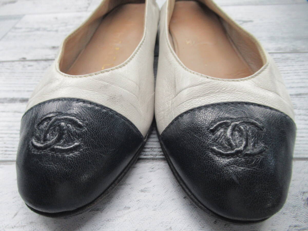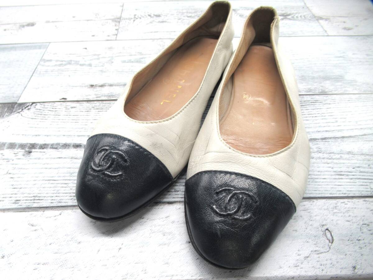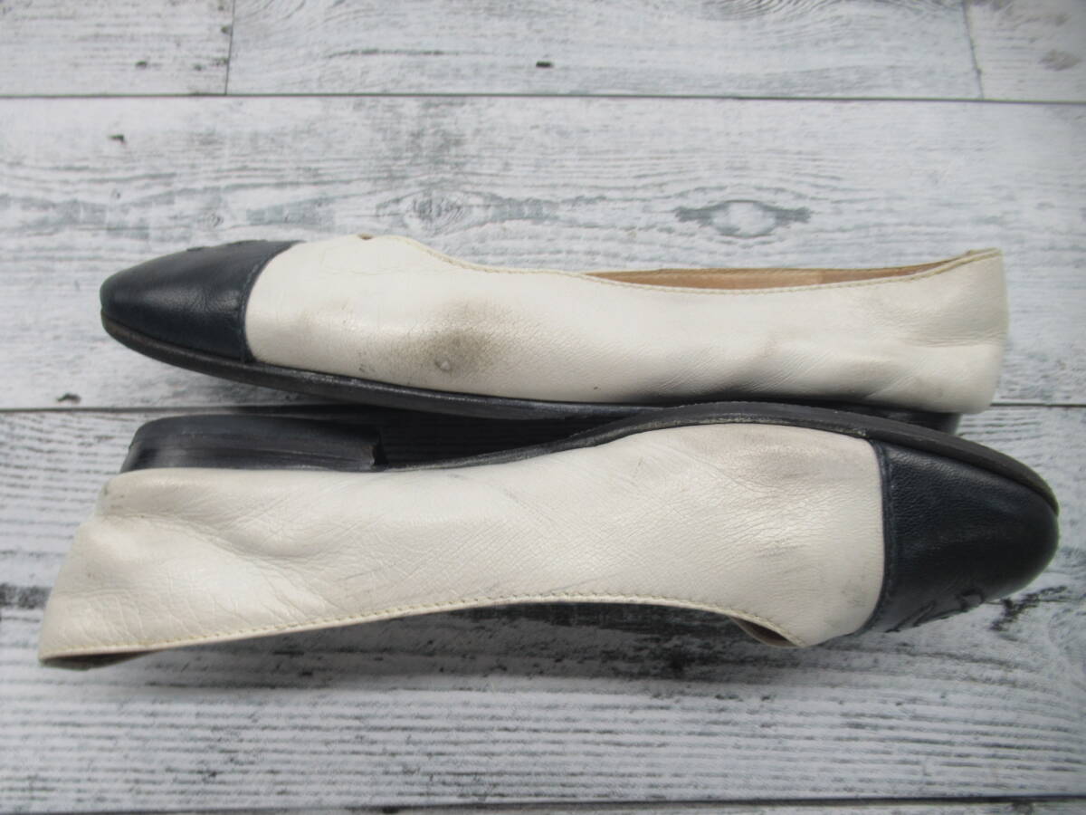 ★【S送900円】2638 CHANEL シャネル イタリア製 フラットシューズ パンプス ココマーク バイカラー 白×黒 34 1/2