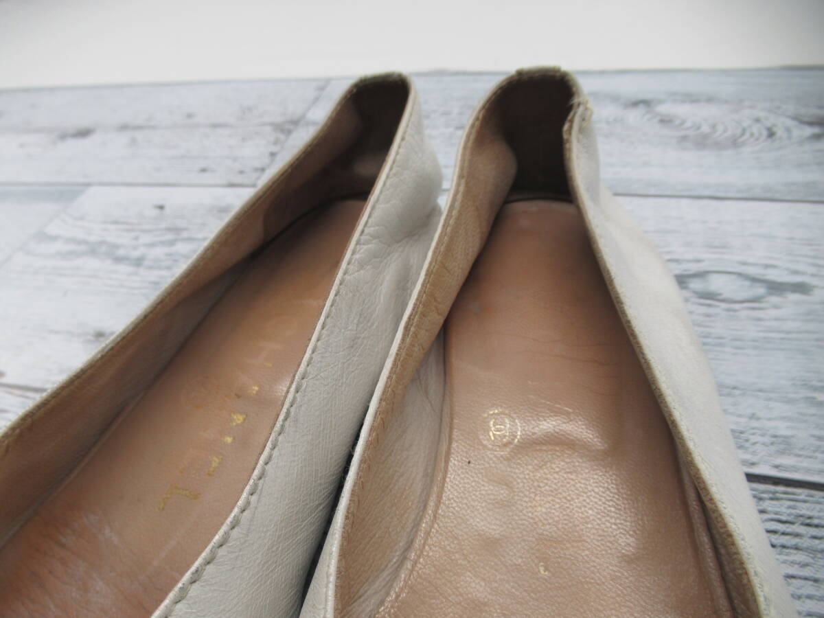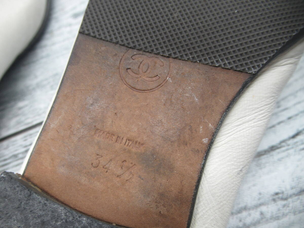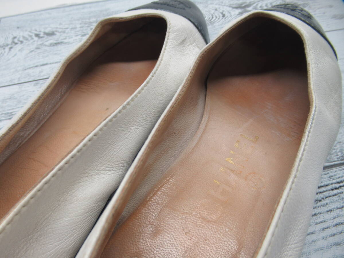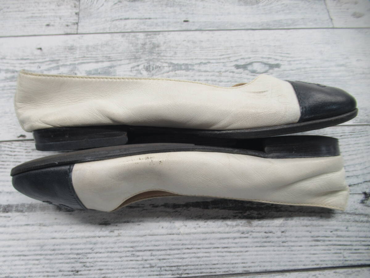 ★【S送900円】2638 CHANEL シャネル イタリア製 フラットシューズ パンプス ココマーク バイカラー 白×黒 34 1/2