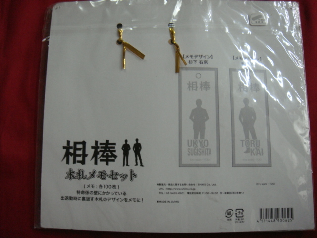 相棒(tv asahi承認済)^,,.木札メモセット*特命係の壁にかかっている出退勤時に裏返す木札のデザインをメモに!_.,,^「未使用品」