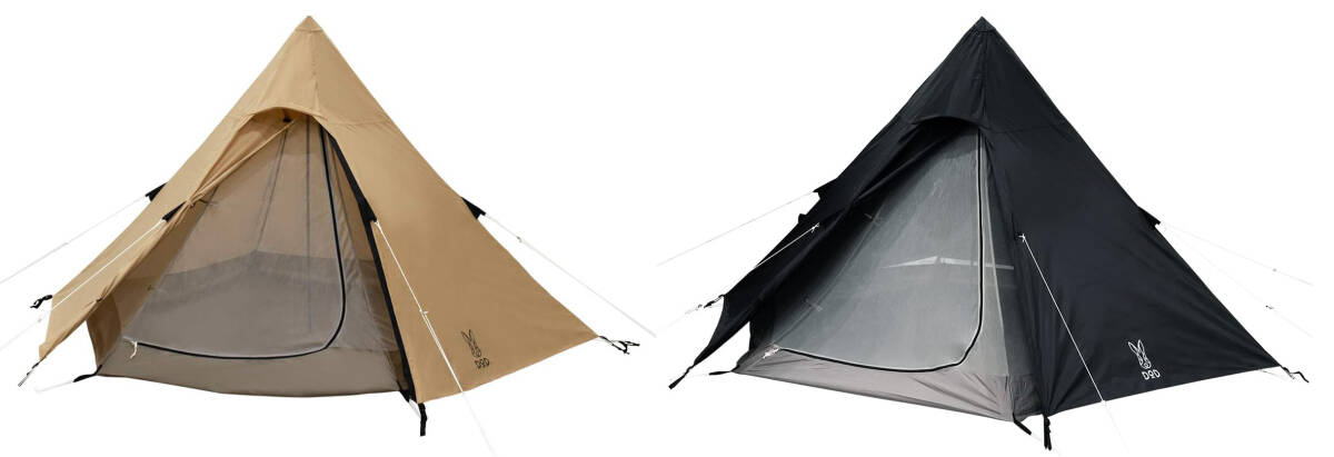 2セット/DODワンポールテントS/2-3人用/人気のTNと汚れが目立たないBLACK色/未使用品002