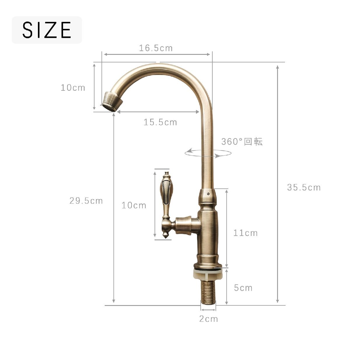 ブランド:Yerdosカラー:金色蛇口が360°回転しますので、とても使い勝手がいい単水栓です!