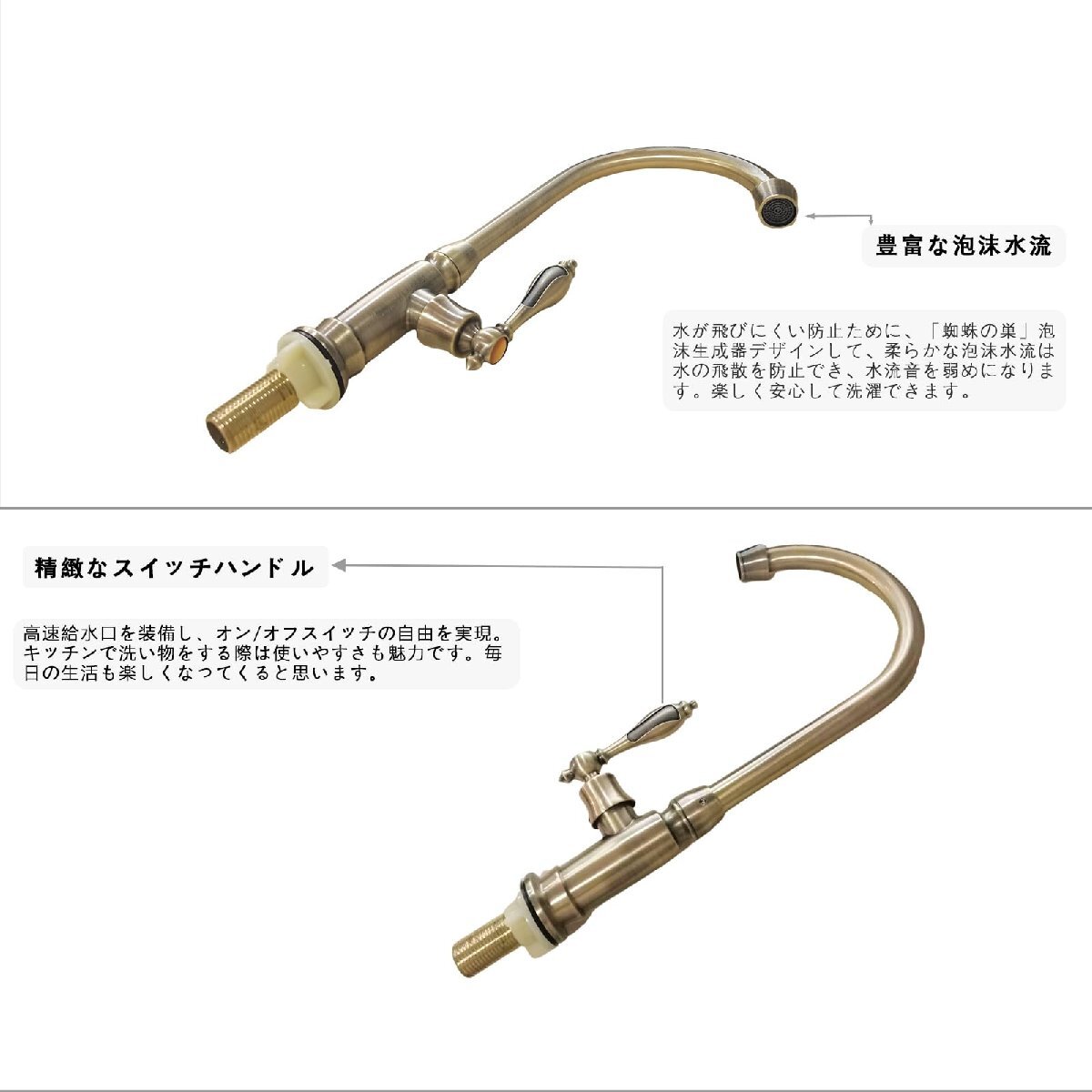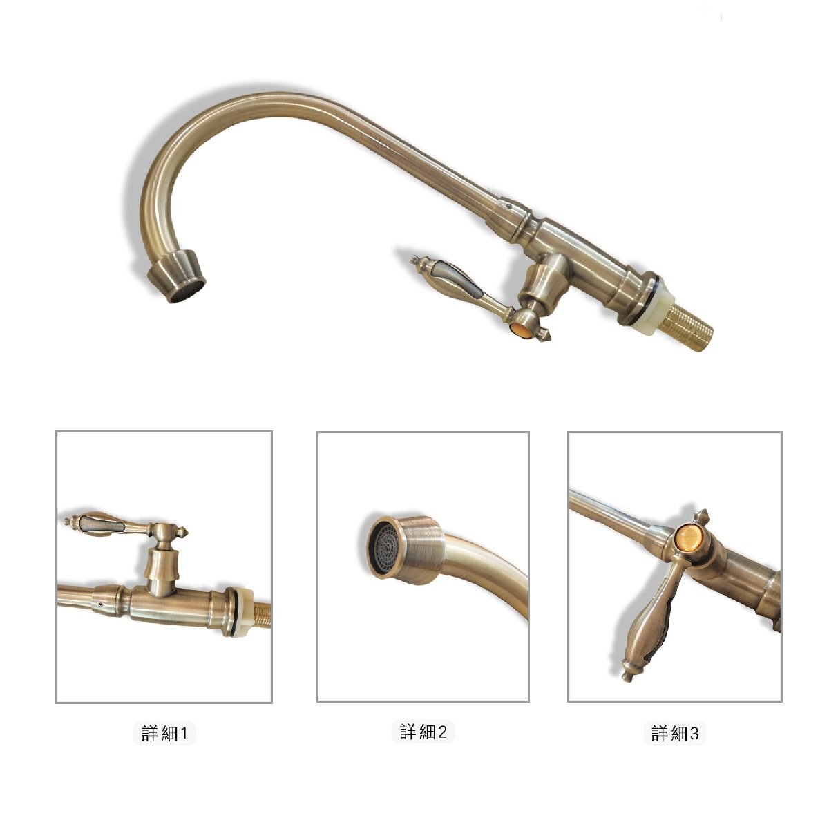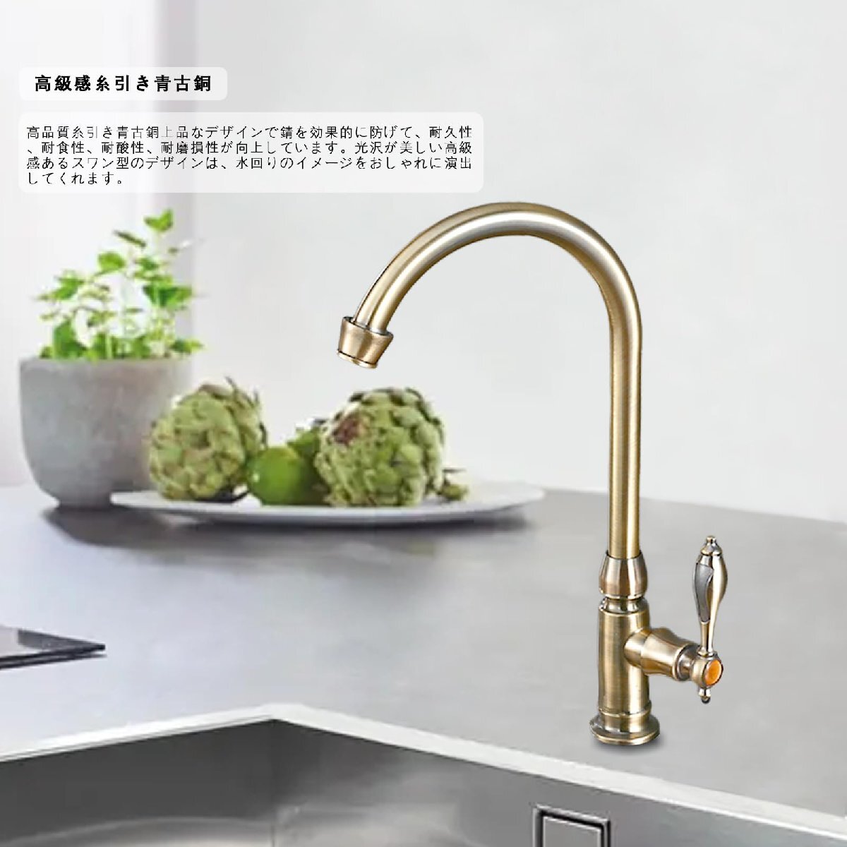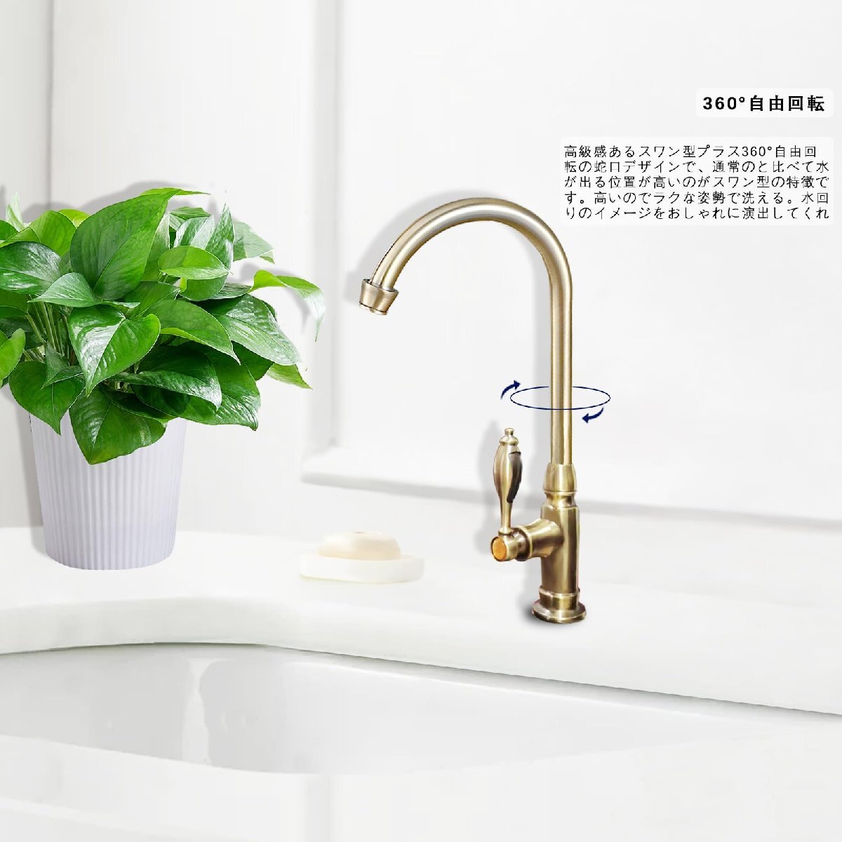 【特価】 スワン 360°回転 洗面用 ロング水栓 Yerdos アンティーク 手洗いボウル 蛇口キッチン 単水栓 レトロ グー