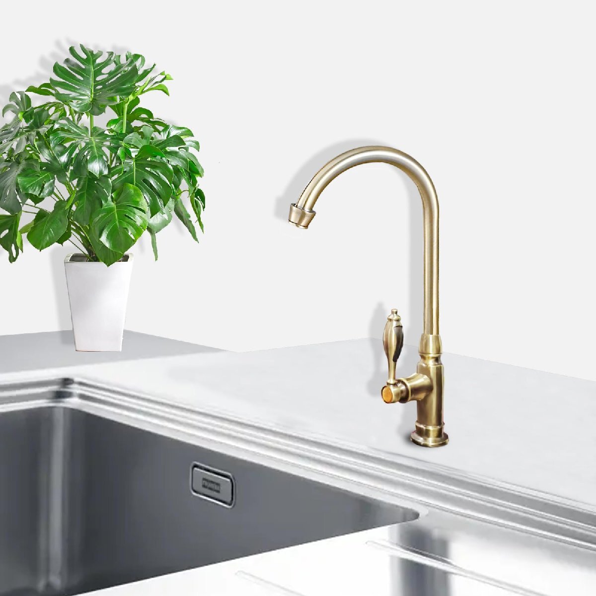 【在庫限りです】【特価】スワン360°回転洗面用ロング水栓Yerdosアンティーク手洗いボウル蛇口キッチン単水栓レトログースネック蛇口