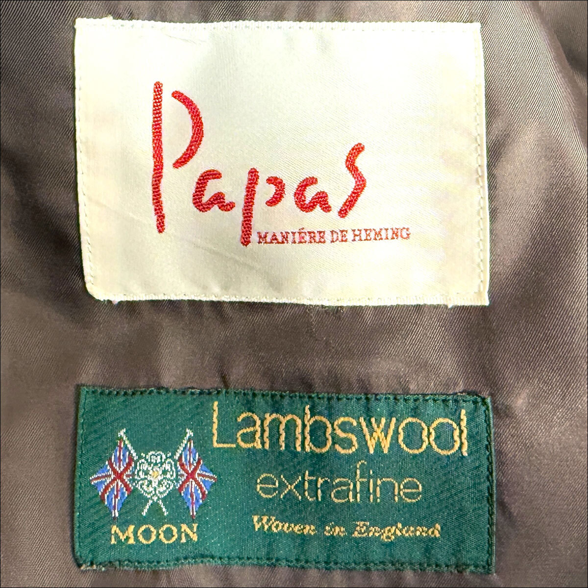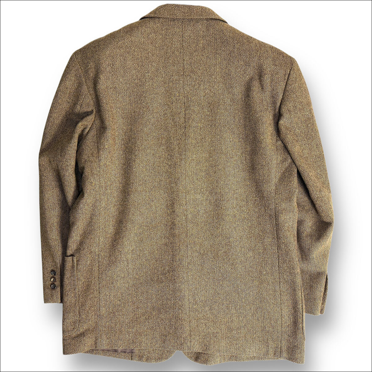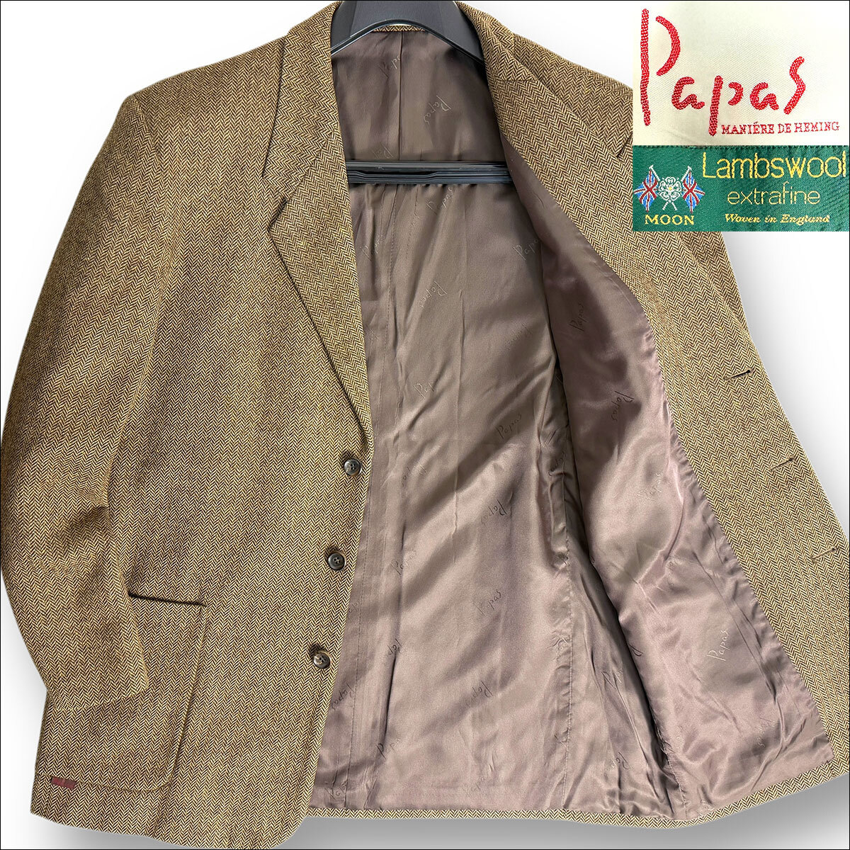 J7106 美品 パパス MOON生地 ヘリンボーン ロゴ裏地 ツイードジャケット ブラウン L Papas