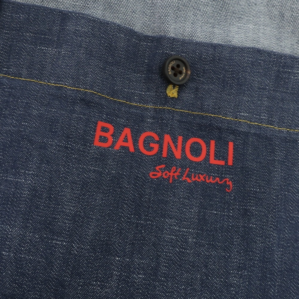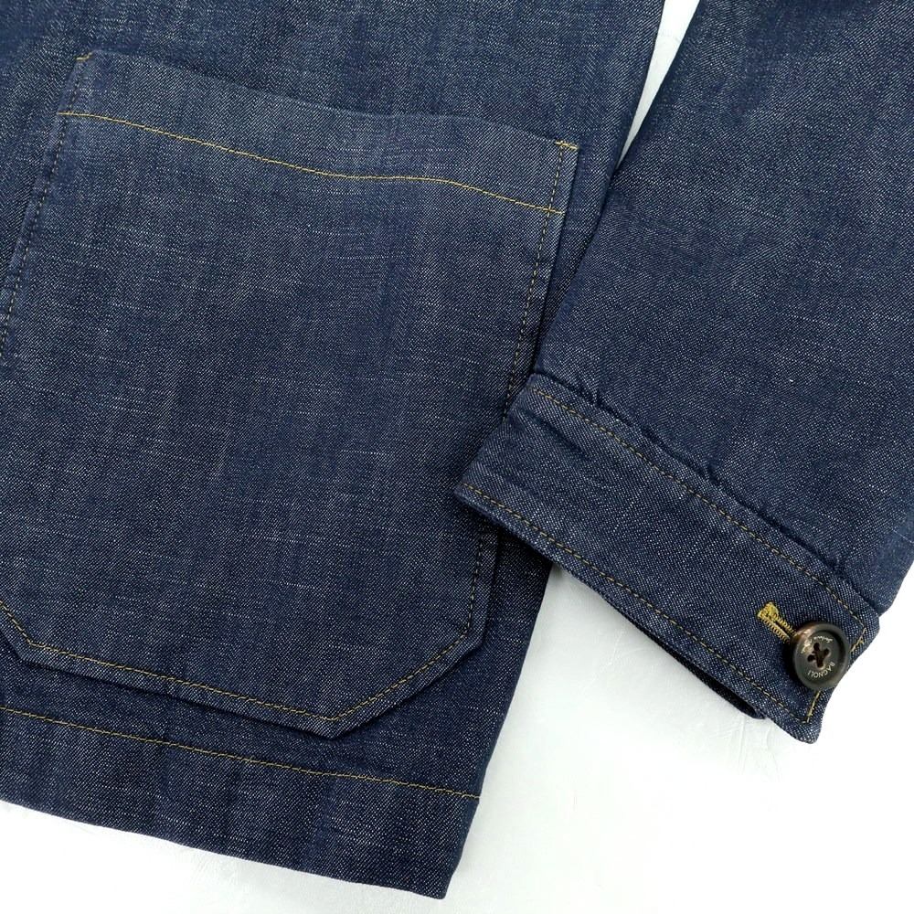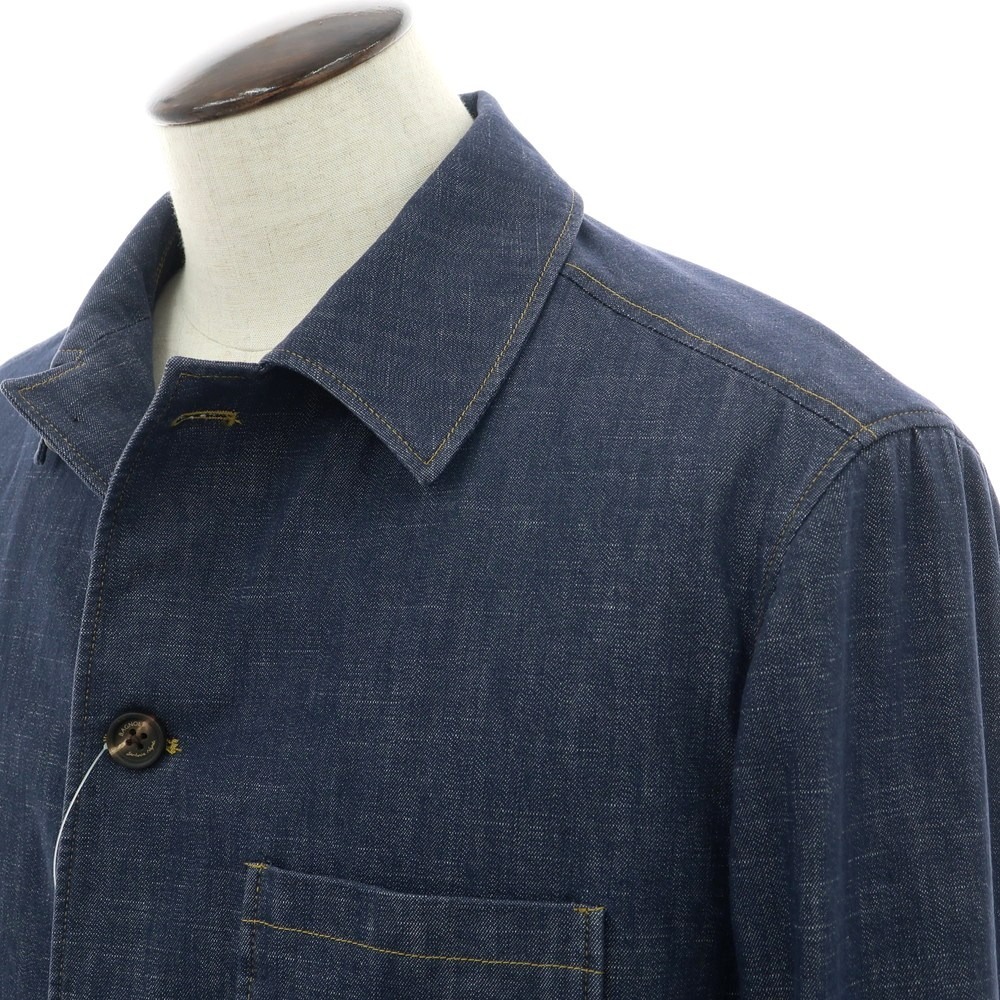 やや軽い雰囲気のストレッチデニム生地を用いたカバーオールジャケットです。カジュアルなデザインのジャケットながら、品の良さをしっかり保った雰囲気はさすがバニョーリサルトリアナポリです。春先や秋口のアウターとして重宝する一着で、スラックスとも相性の良いジャケットになっています。