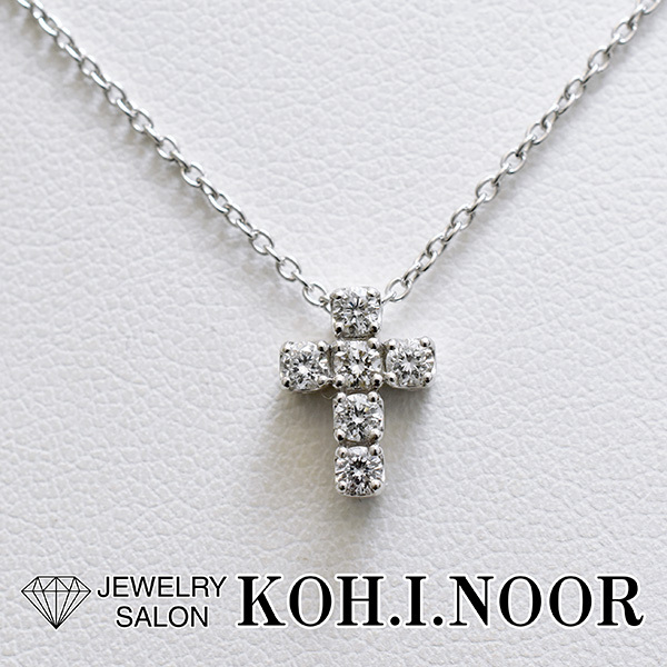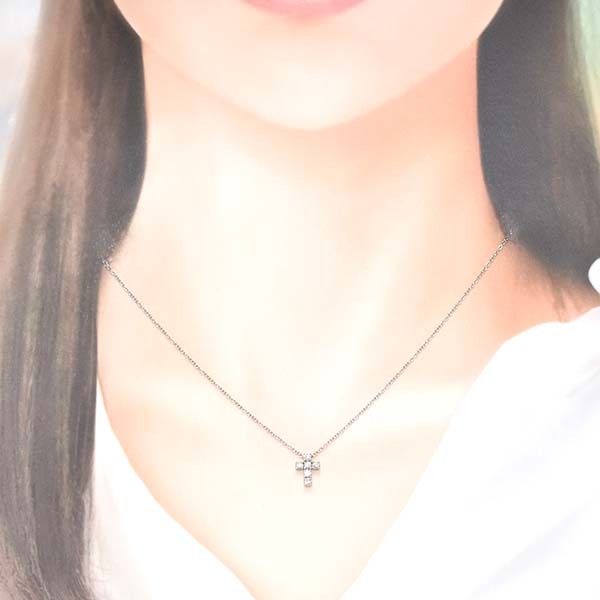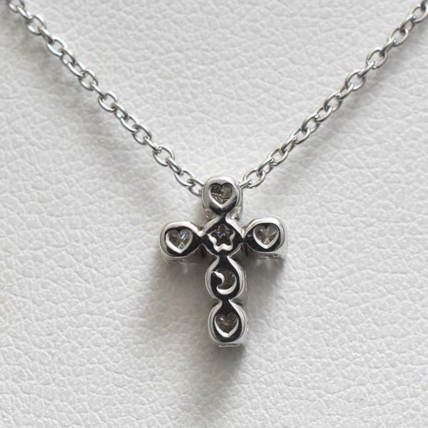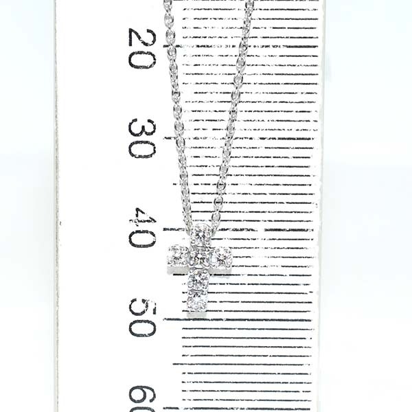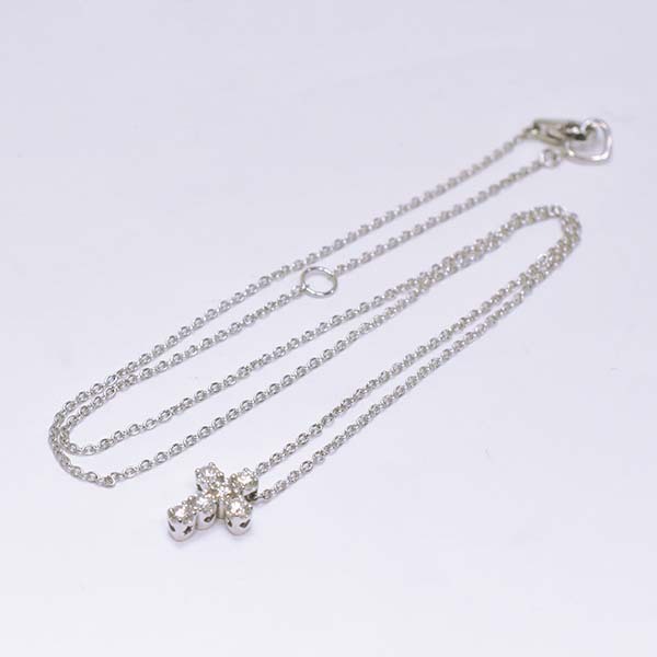 クロスモチーフに6石のダイヤをセットしたポンテヴェキオの18金ホワイトゴールド製プチネックレス。