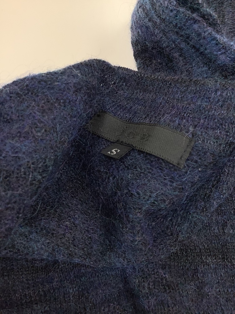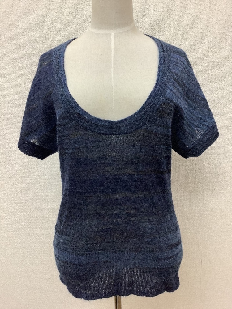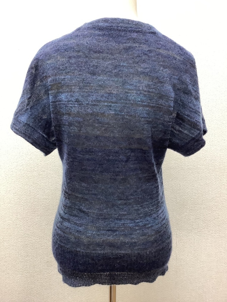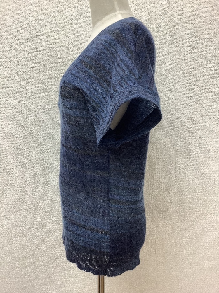 | 管理番号:10^131479 iCB ブルー系ボーダー風ニット モヘヤ入り 表示サイズ:S 実寸(参考)