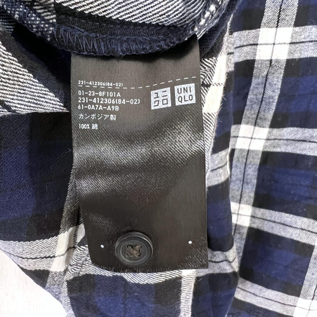 女性用のネイビー系の長袖チェックシャツ チェックブラウス 柄物シャツ 柄シャツ トップスです。中古品ですが目立つ傷や汚れもなく、まだまだ使えます 古着 株式会社ユニクロ 綿ニット コットンシャツ フランネルシャツ
