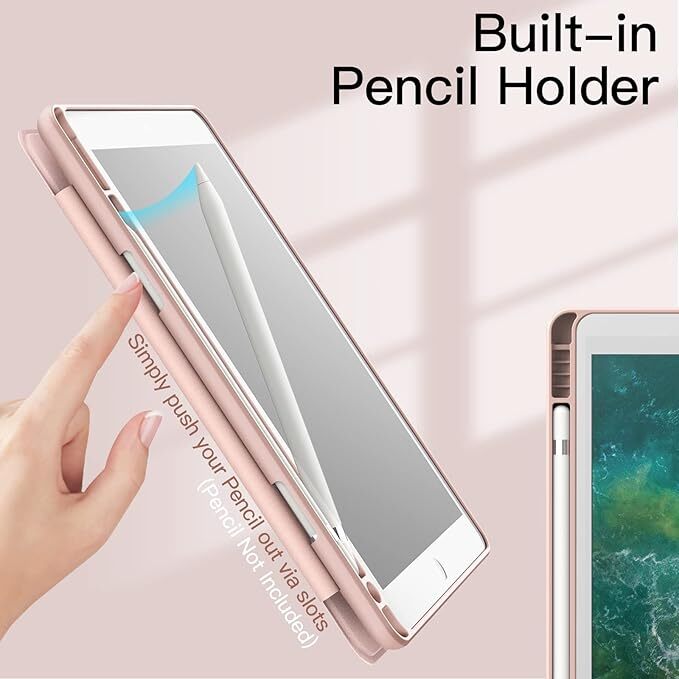 JETech iPad 9.7インチ ケース(第6/5世代、2018/2017モデル用)Pencil収納可能透明バックカバー タブレットカバー (ローズゴールド)