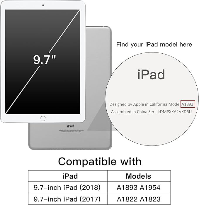 • [互換性] iPad 9.7インチ(第6/5世代、2018/2017モデル)用の特別デザインです。対応モデル:A1822/A1823/A1893/A1954。おデバイスの裏面にあるモデル番号をご確認ください