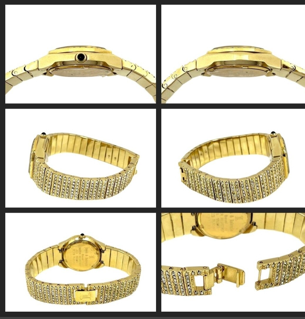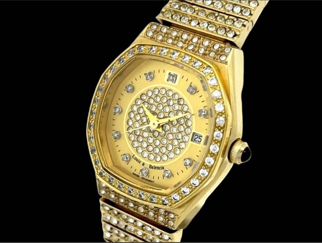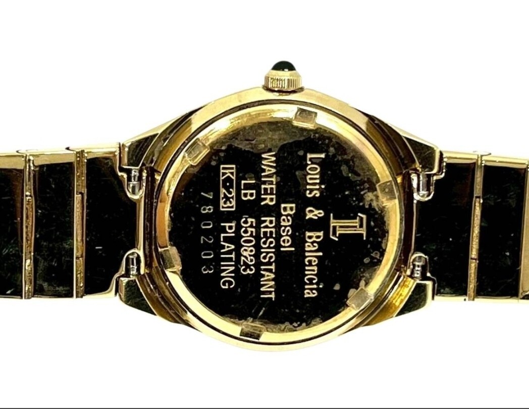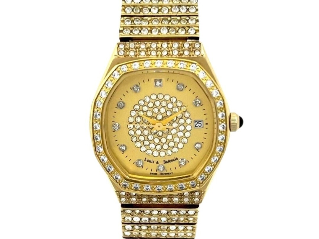 稼働品 Louis&Balencia/ルイス&バレンシア ラインストーン LB550823 ゴールドカラー デイト クォーツ レディース腕時計