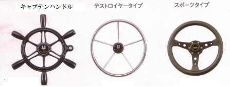 取り付け可能馬力数は、1基の場合200PS以下・2基掛けの場合150PS以下です。 取り付け可能馬力の数値は小さいですが、 馬力数に余裕を持った数値となっております。 ヘルムポンプは通常20CC仕様ですが、 取り付け機種によりヘルムポンプの変更(16CC~30CC)も可能です。 変更の際は、よりクイックな操作をする為にも自己判断で購入せずに一度ご相談下さい。 通常はキャプテンハンドルですが、その他ハンドルにも変更可能です。 3種類からお好きな形(1種類)が選べます。 落札後にご希望のハンドルをお知らせ下さい。 ※ハンドルによっては納期が必要な場合も御座います。 デストロイヤーハンドルに関してですが、 当店ではオリジナル商品として他社ハンドルをセットさせて頂いております。 他社ハンドルの方が外径(350mm)が小さく廻しやすい為、 こちらをオススメしております。 ユニカス製のハンドル外径は389mmです。 ハンドル変更やポンプ仕様の変更など標準仕様以外に変更する場合は、 納期に営業日3日程度必要ですので、お急ぎの方は先にご連絡下さい。 ※艇種に応じてオプション部品が必要な場合があります。 必ず落札前にご使用の艇種・エンジン型式をお知らせ下さい。 自己判断で購入された方は、当方では一切責任を負えません。 ホンダの船外機には取付出来ません。 ホースの長さは15mです。 他にも色々な出品をしていますので、出品リストをご覧下さい | ||||||||||||