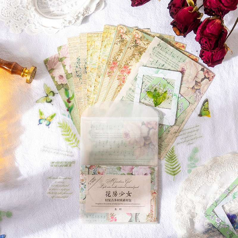 アンティークな雰囲気のシールと紙もののセットです。