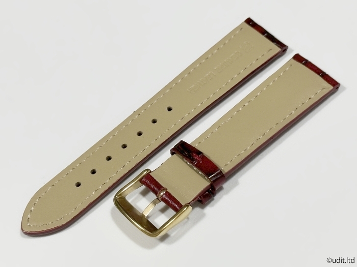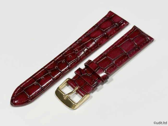 ラグ幅20mm クロコダイル型押し 腕時計レザーベルト レッド ゴールド尾錠 時計用バンド LB102