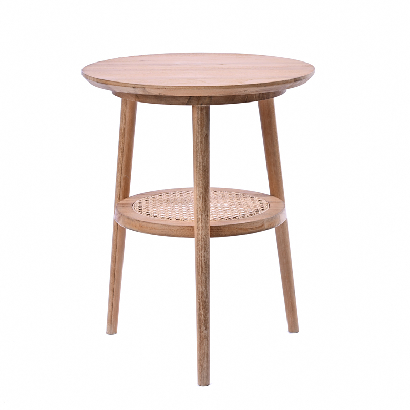 籐 ラタン サイドテーブル ナチュラル チーク無垢材 アジアンテイスト T038XP