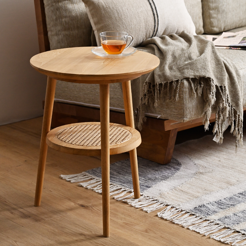 抜け感がおしゃれなラタンのカゴメ編みをあしらったサイドテーブル。