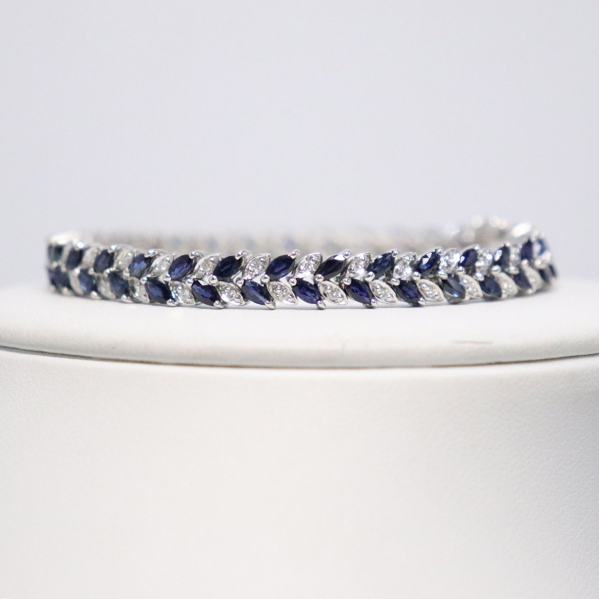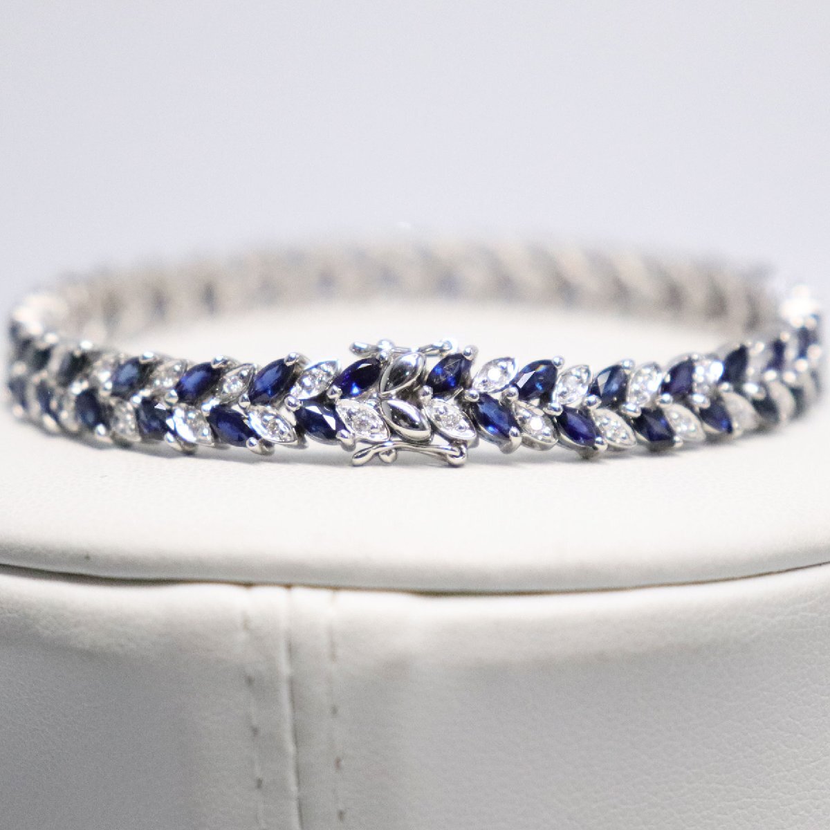 商品名 750 K18WG サファイア ダイヤモンド テニスブレスレット S7.13ct D0.51ct 重量約15.9g 腕回り内周約17cm bracelet 中古 美品 送料無料!!