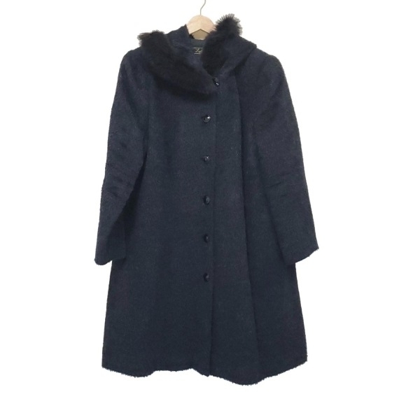 レリアン Leilian サイズ13 - ダークネイビー 長袖/フード付き/肩パッド 美品 コート