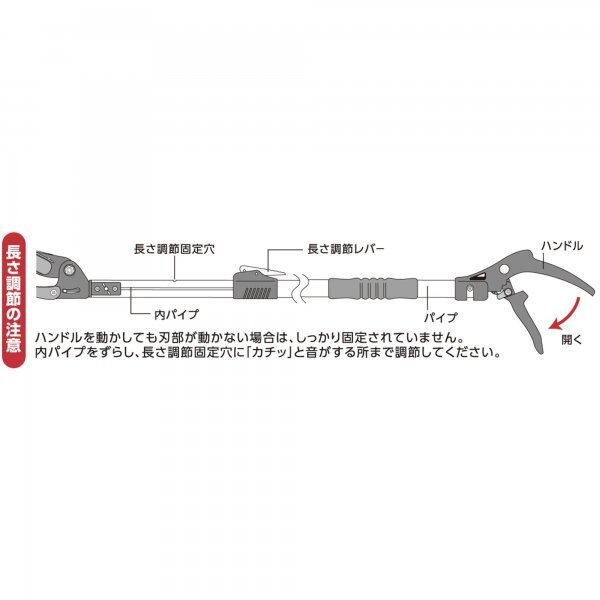 - 使用時は高所での作業になりますので、しっかりとした姿勢を保ち、危険を避けてください。