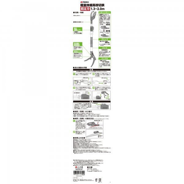 高儀(Takagi) 軽量伸縮高枝切鋏 剪定刃1.3-2.0m 燕三条ブランド 高枝切りバサミ 高枝切はさみ AF456