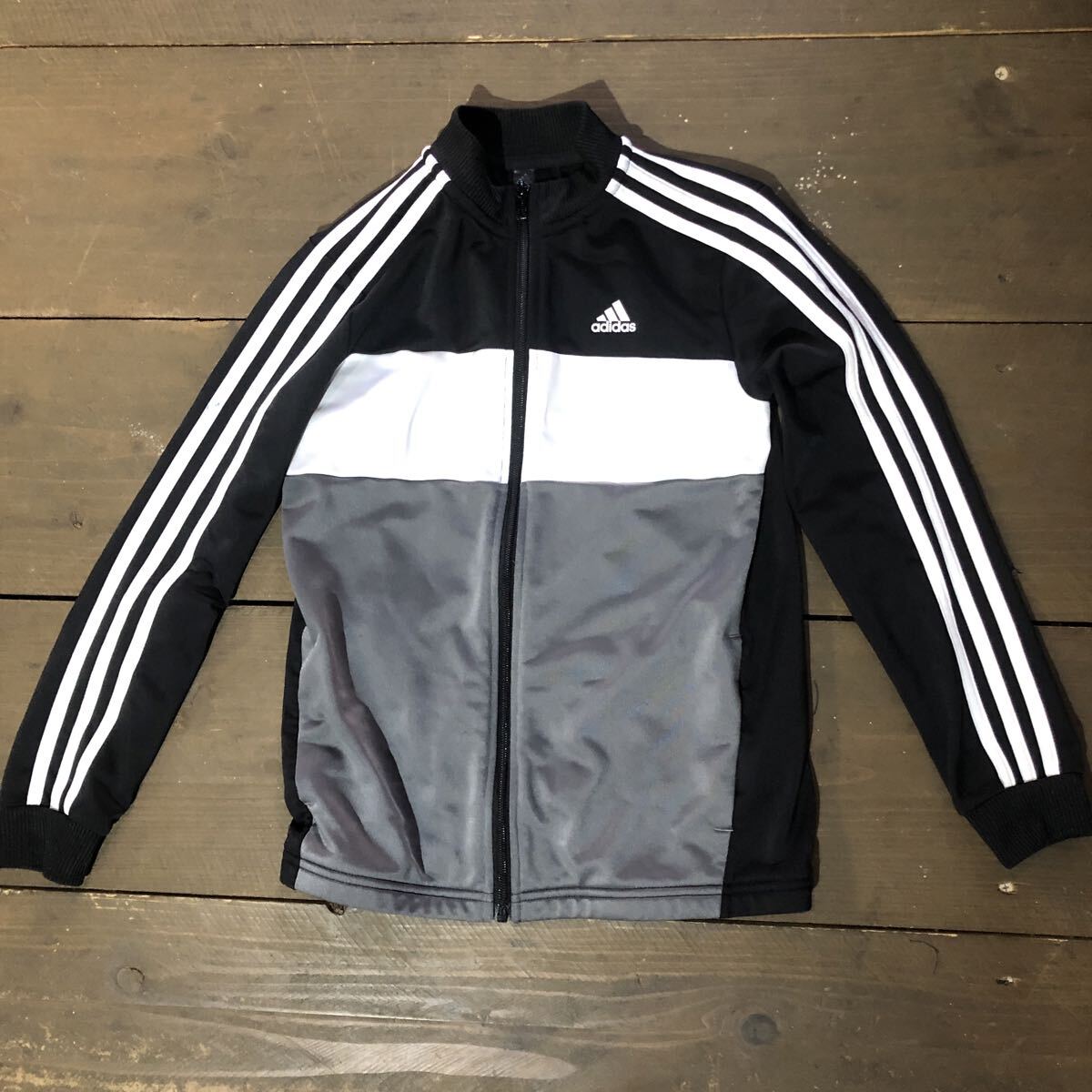 adidas アディダス ブラックxホワイト スリーストライプス 150サイズ キッズサイズ トラックジャケット