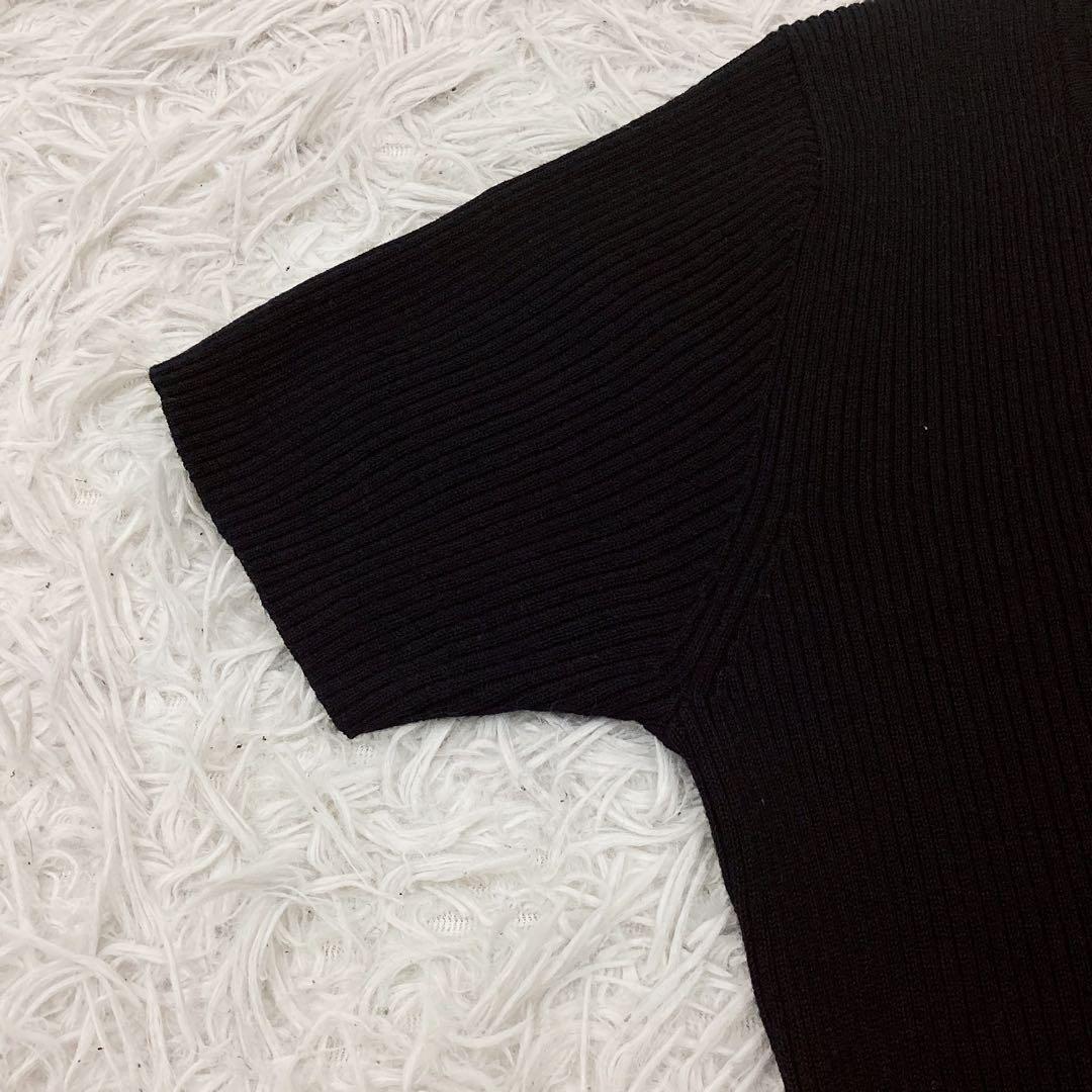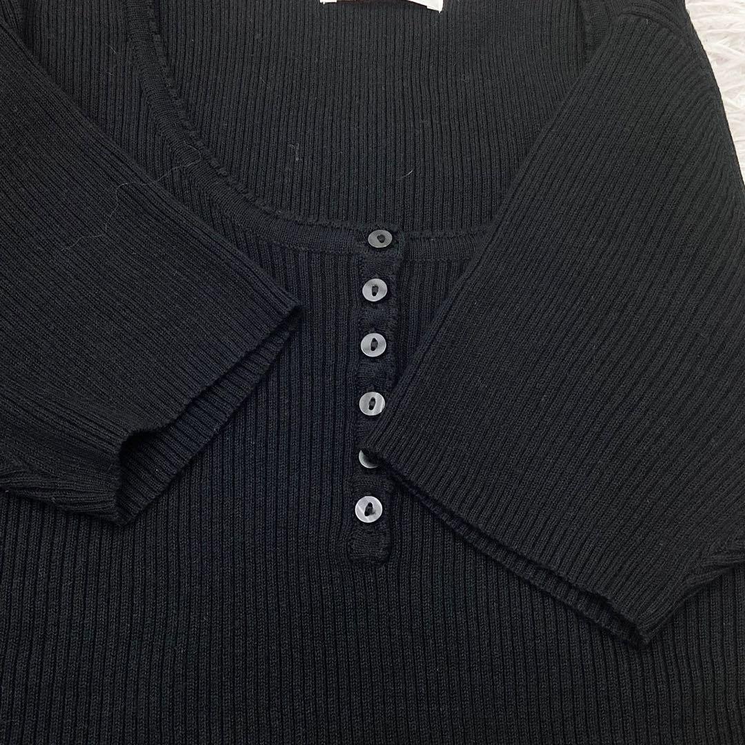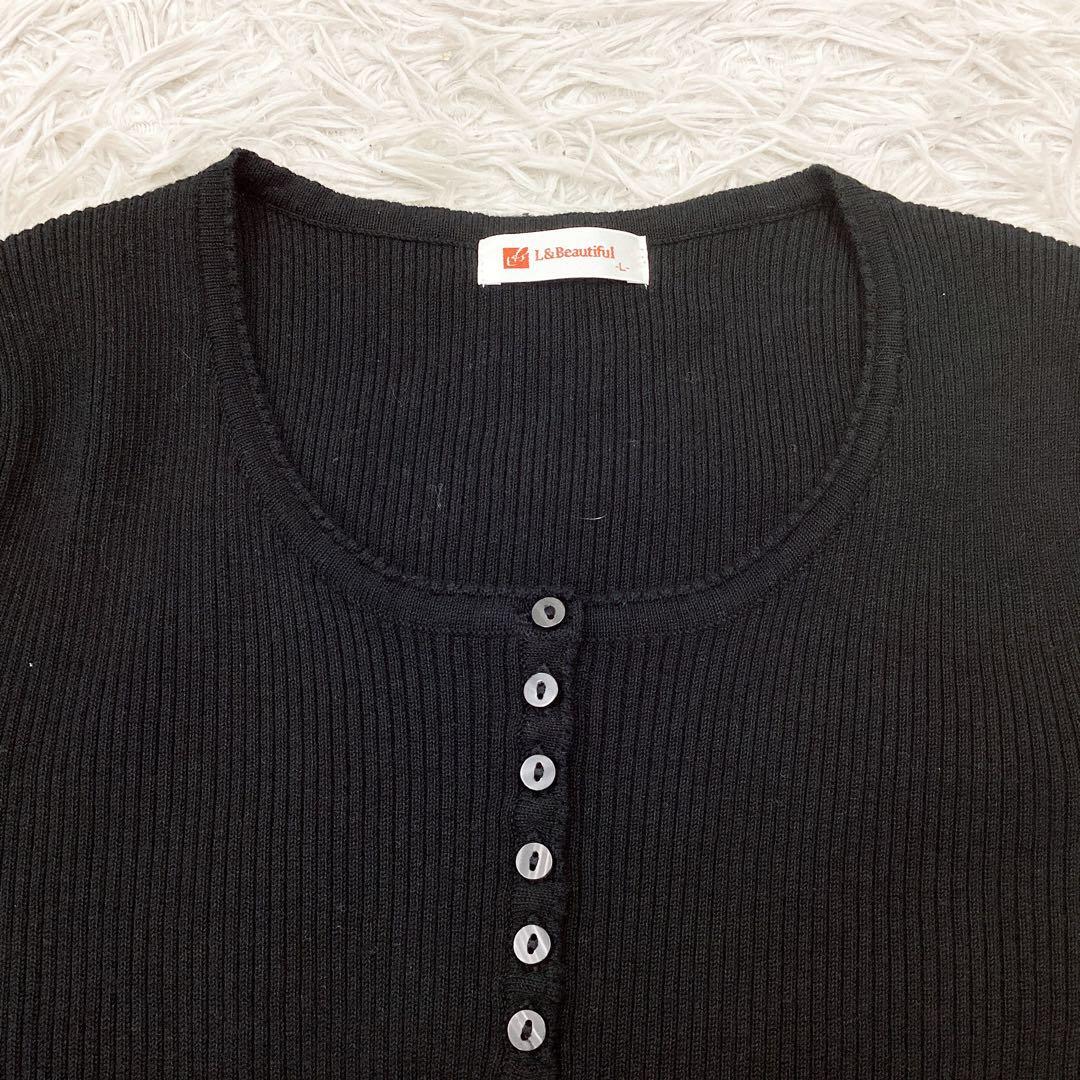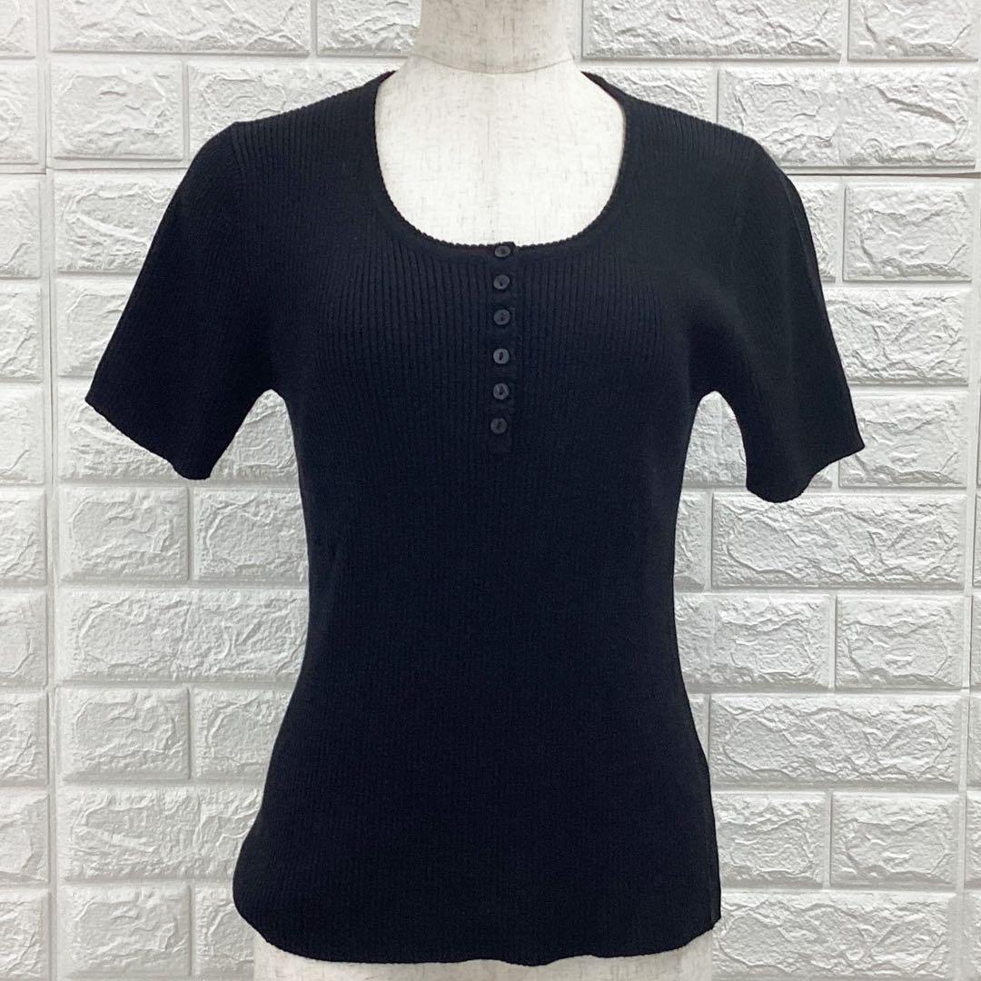 【AA4307】 L&Beautiful エルアンドビューティフル ニットカットソー ブラック 半袖 レディース 古着 タイト 黒トップス ブラック