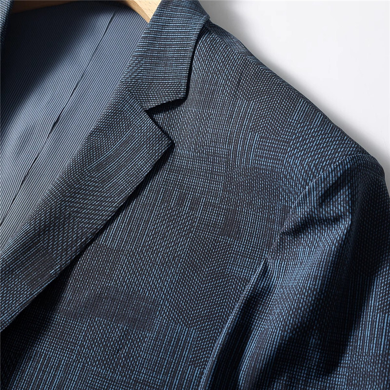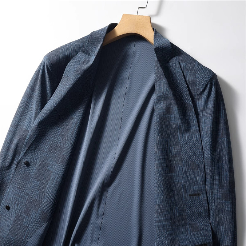 T8902-3XL/ネイビー 新品 テンセル 涼感 テーラードジャケット 薄手 メンズ 春夏 サマー ストレッチ 配色 ストライプ シルクタッチアンコン ブレザー 背抜
