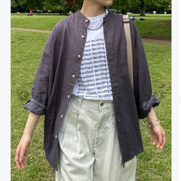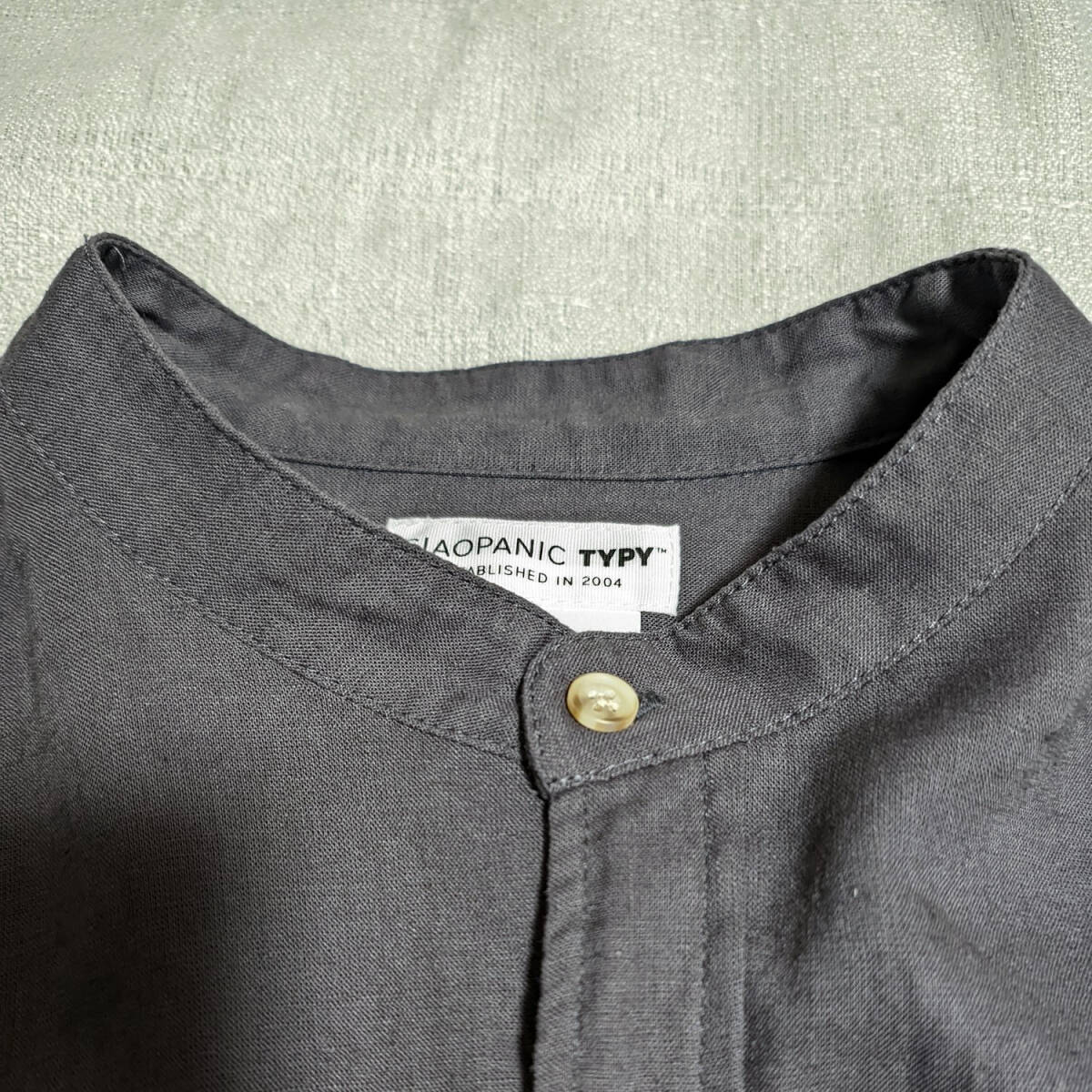 CIAOPANIC TYPY リネン バンドカラーシャツ 7部丈 グレー L チャオパニックティピー 麻