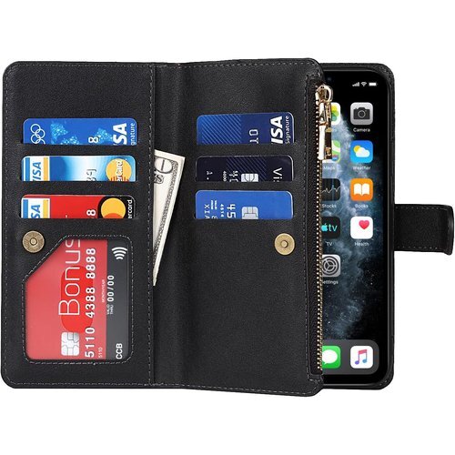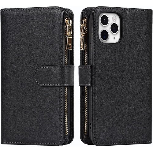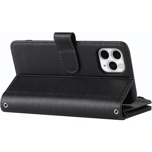 Pelanty for iPhone 11 Pro 縄掛けケース 手帳型 携帯カバー 肩掛け首かけ斜めがけ ショルダー 合成皮革+TPUケース マグネット iPhone11 pro 財布型カバー ICカード お札入れ小銭入れ大容量 収納ポケット スタンド機能 アイフォン11プロ ストラップ付き 落下防止 耐衝撃 耐摩擦 全面保護(肩縄付き-ブラック)