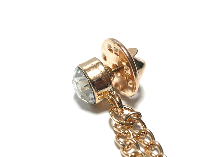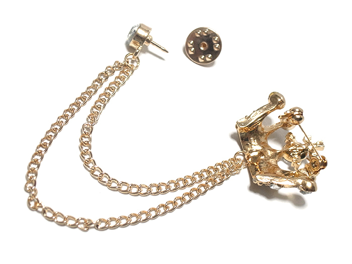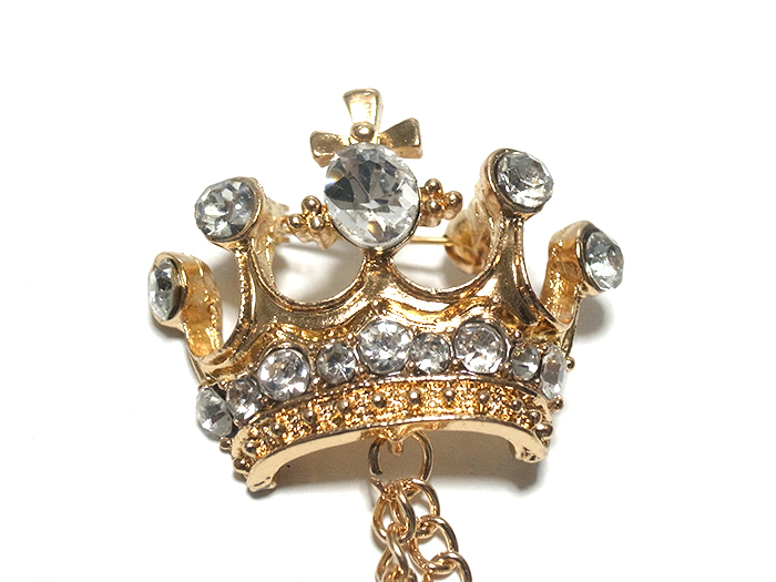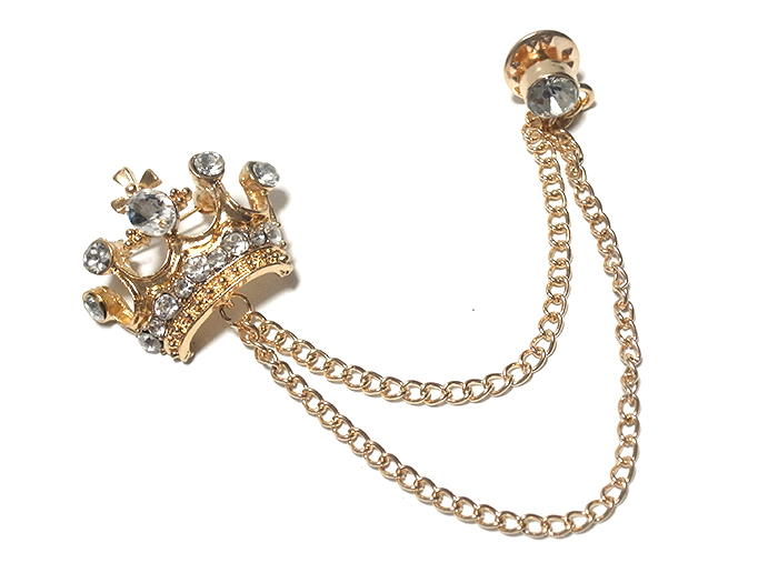 ラペルピン★チェーン★ブローチ★ピンズ 王冠 クラウン ラインストーン キラキラ ゴールド pin-1159
