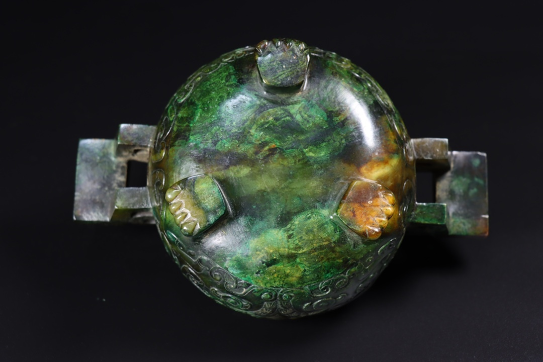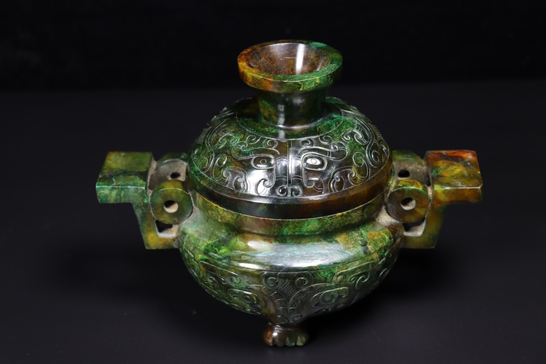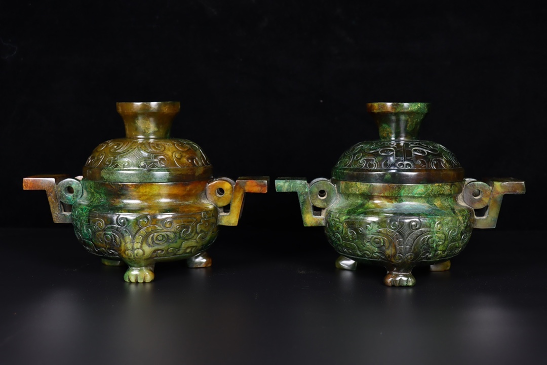 唐物 清 玉彫 和田玉 爐一對 玉質細膩 包漿厚重 沁色入骨 彫工精細 置物 極細工 中国古玩 骨董品 古美味 D69