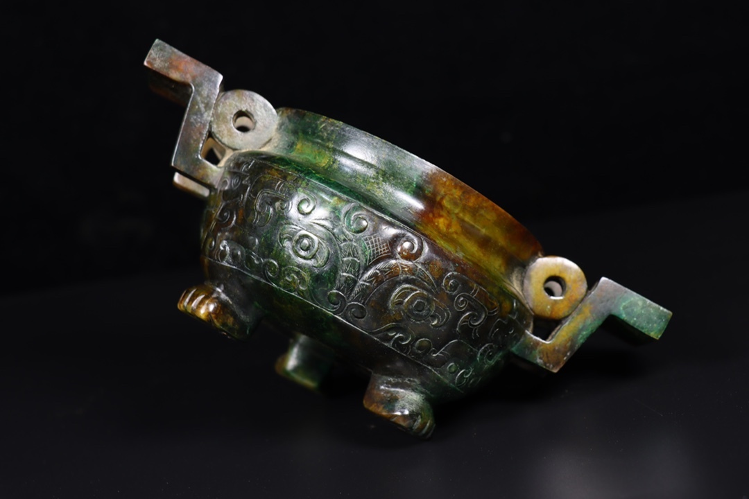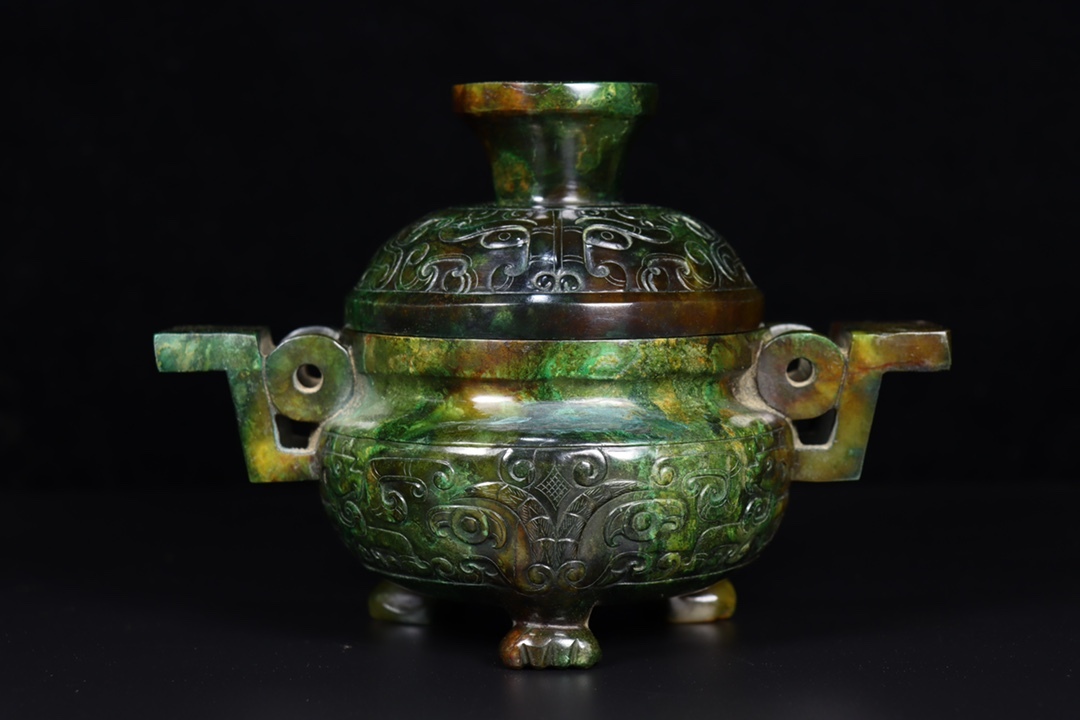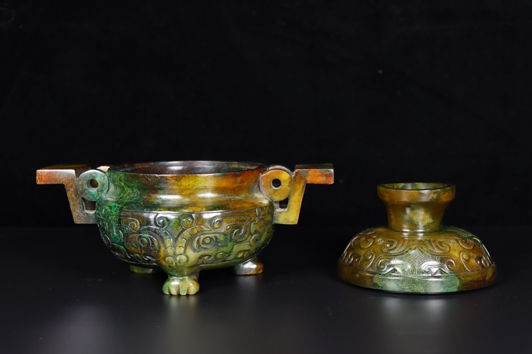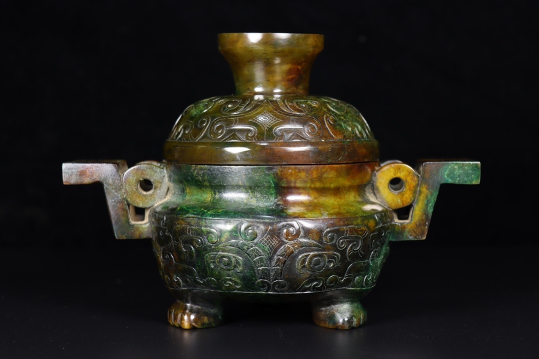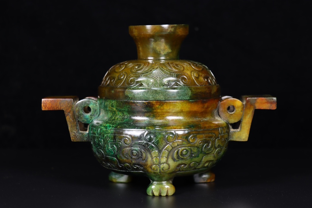 唐物 清 玉彫 和田玉 爐一對 玉質細膩 包漿厚重 沁色入骨 彫工精細 置物 極細工 中国古玩 骨董品 古美味 D69