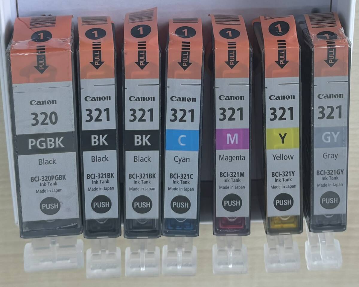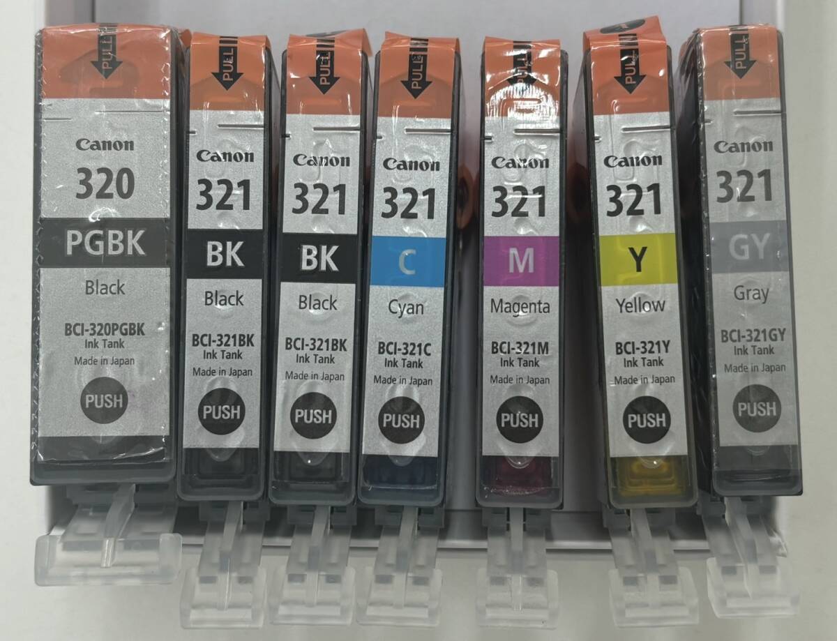 ◇◆◇ [Canon (キャノン)] 純正インクタンク BCI-320(PGBK)+ BCI-321(BK=2個/C/M/Y/GY) 計6色7個セット ※未開封・未使用品 ◇◆◇ |