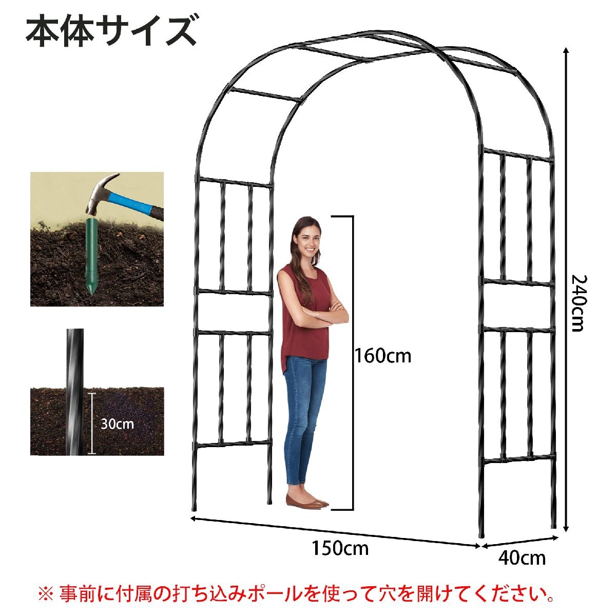 【現品限り】 幅150×奥行40×高さ240cm 金属製 フラワーアーチ 錆びにくい パイプ径20mm 組立簡単 バラアーチ C