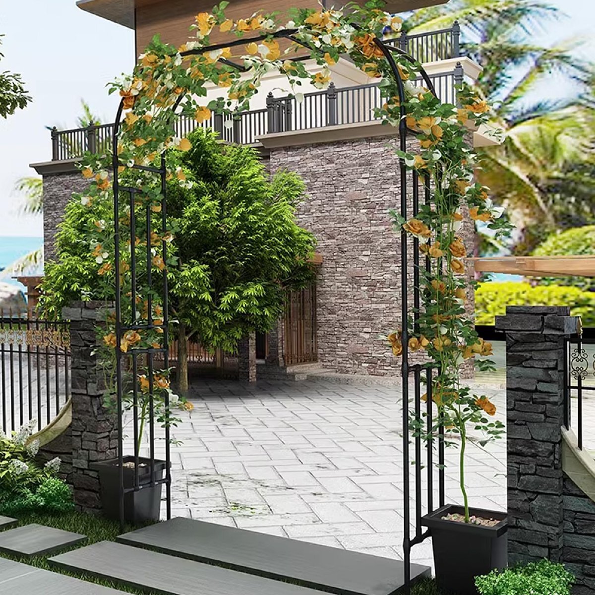 【バラのアーチで空間を演出】このバラのアーチは、バラ、クレマチス、アサガオ、ブドウなどのつる植物のサポートにぴったり。屋外の結婚式や誕生日会、イベント装飾にも最適で、ライトや布を使えば幻想的な雰囲気に。ガーデニング愛好家のための装飾アイアンアーチとしておすすめです。