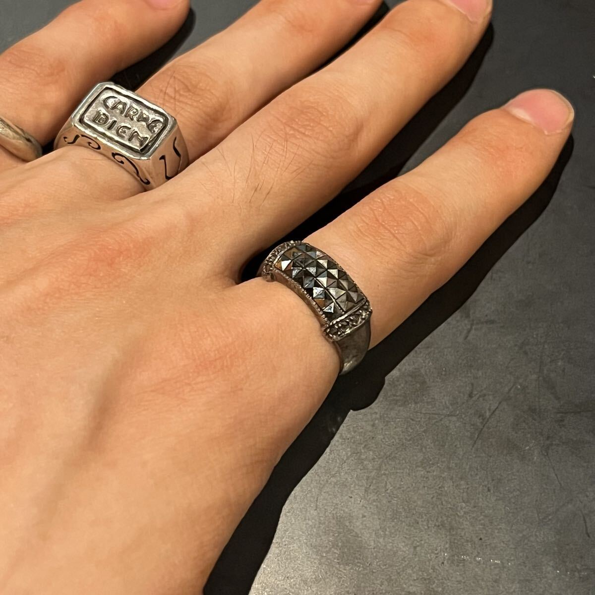 海外で買い付けたグリッターセッティングデザインのシルバーリングです。
